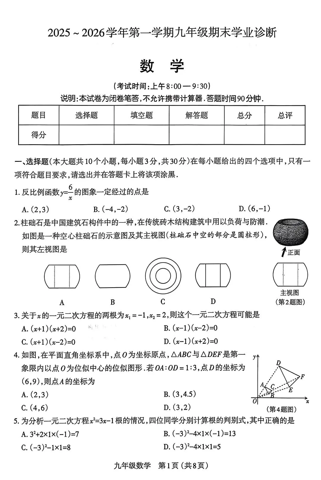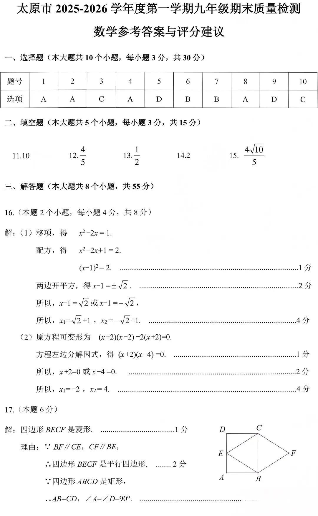 >太原市2025—2026第一学期九年级期末数学试卷+答题卡+答案