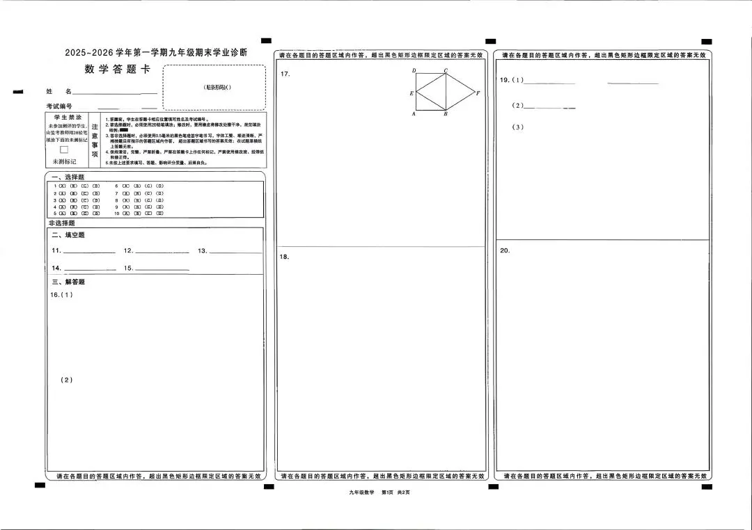 太原市2025—2026第一学期九年级期末数学试卷+答题卡+答案