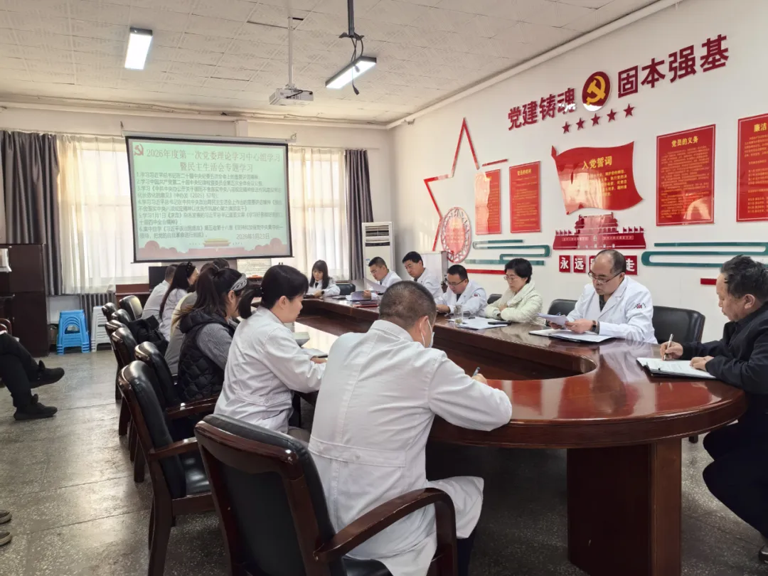 1月23日,大同市第四人民医院党委召开2026年度第一次党委理论学习中心组学习暨民主生活会专题学习。会议由党委书记李占海主持,院领导班子成员、各支部书记及相关职能科室负责人参加学习。