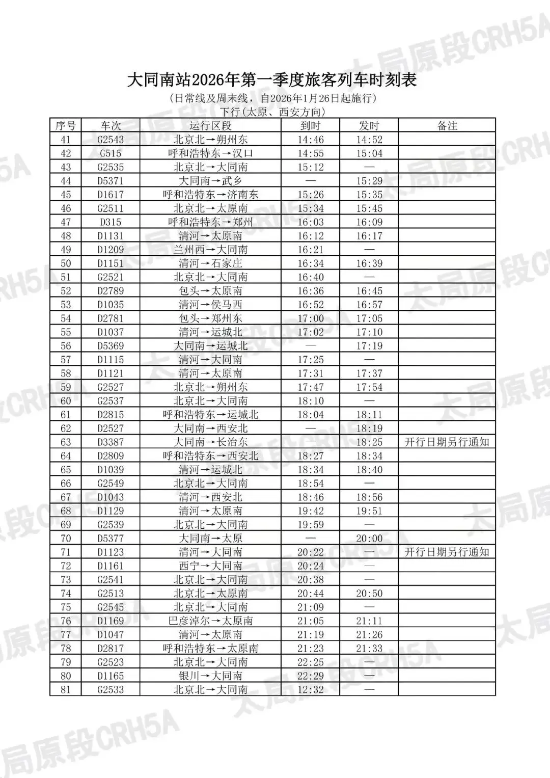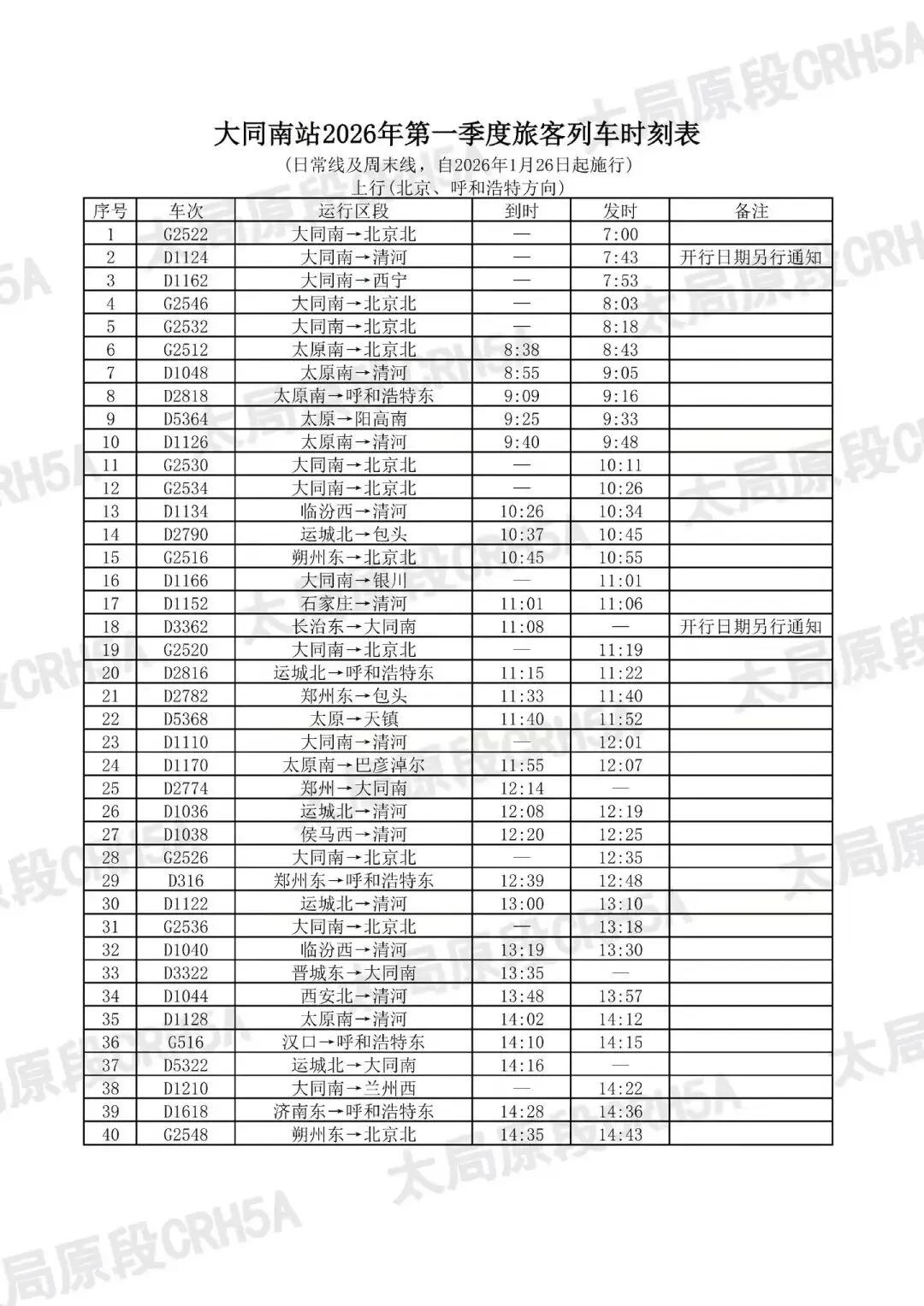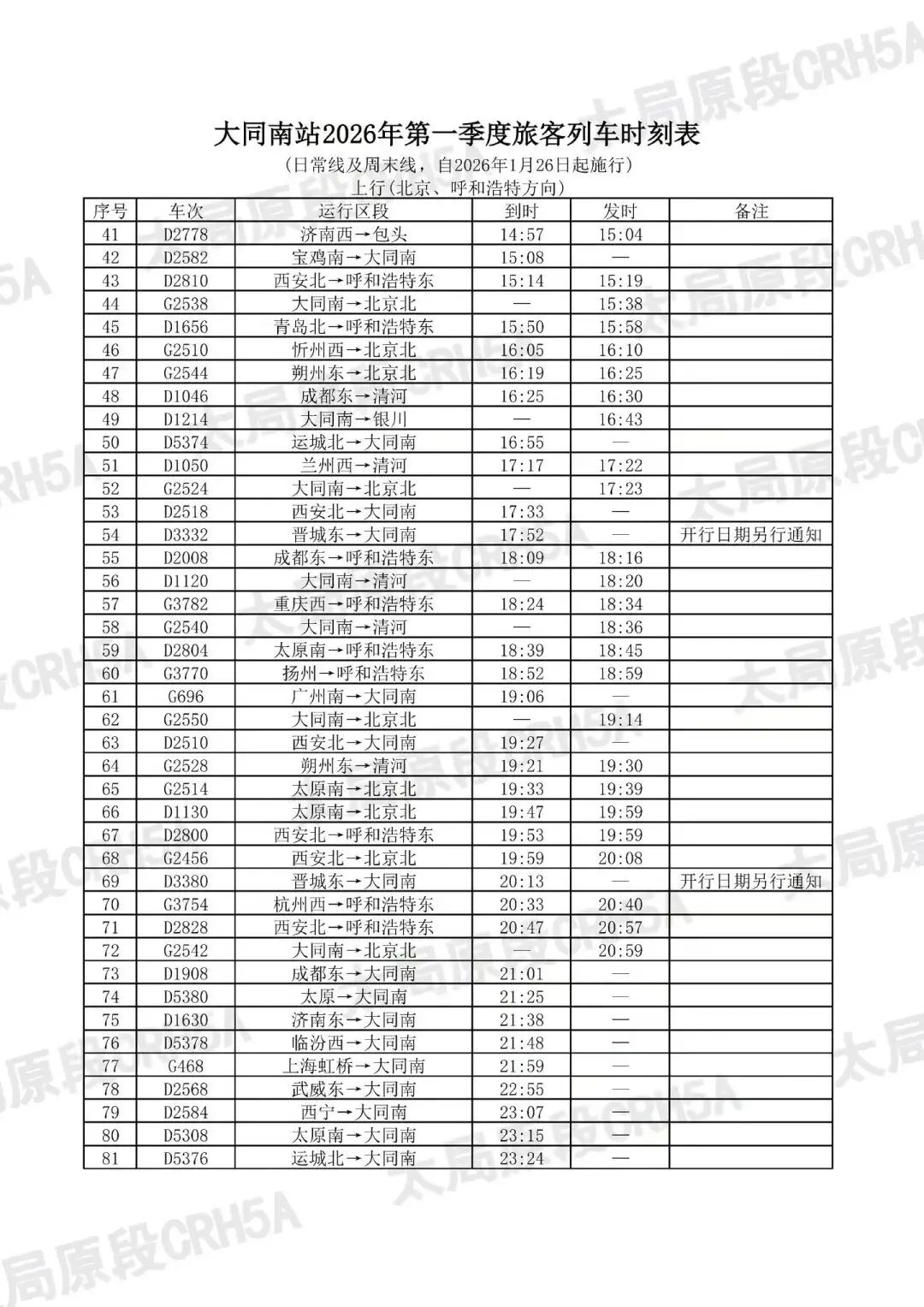 大同南站客运人员特别提醒
