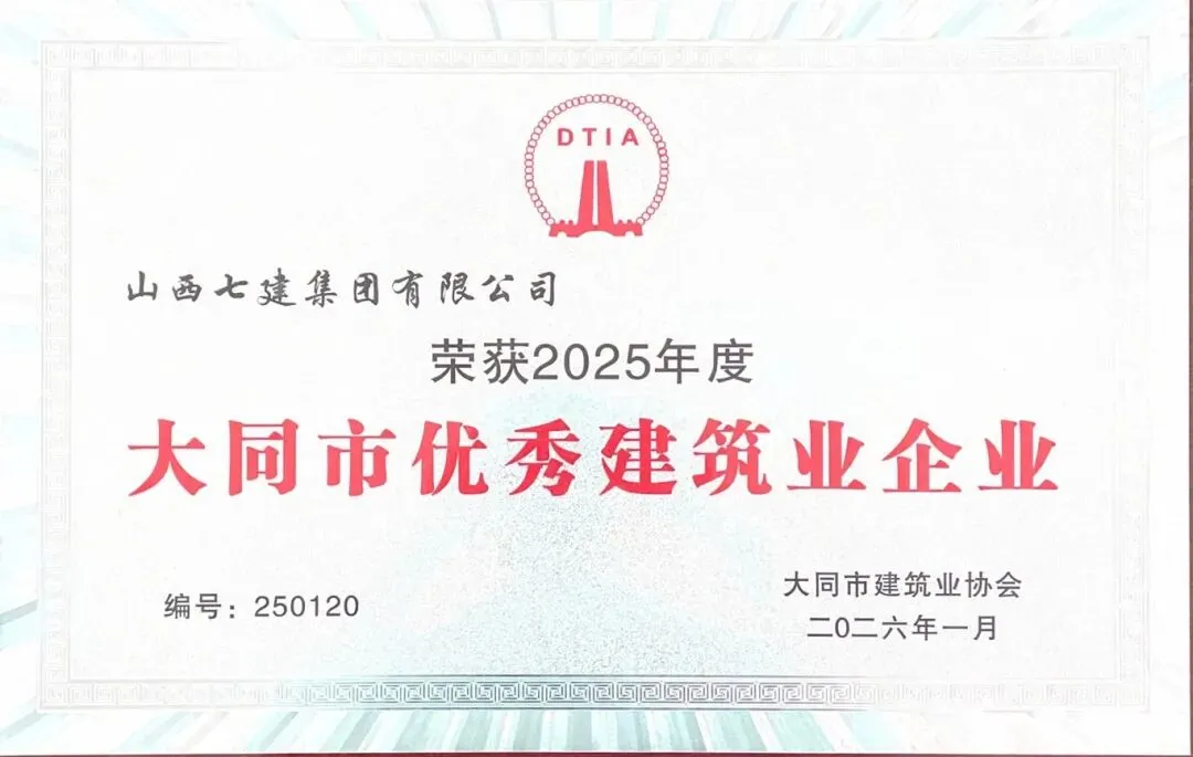 近日,2025年度大同市优秀建筑业企业评选结果正式公布,山西建投七建集团凭借过硬的工程品质、高效的履约能力及坚定的责任担当,获评此项殊荣,该荣誉由大同市建筑业协会正式颁发,是行业对公司在大同地区深耕细作、精益求精的高度肯定。