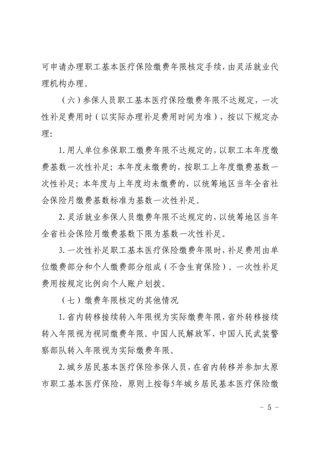 2.城乡居民基本医疗保险参保人员,在省内转移并参加太原市职工基本医疗保险,原则上按每5年城乡居民基本医疗保险缴费年限折算1年职工基本医疗保险缴费年限,与职工基本医疗保险缴费年限累计计算