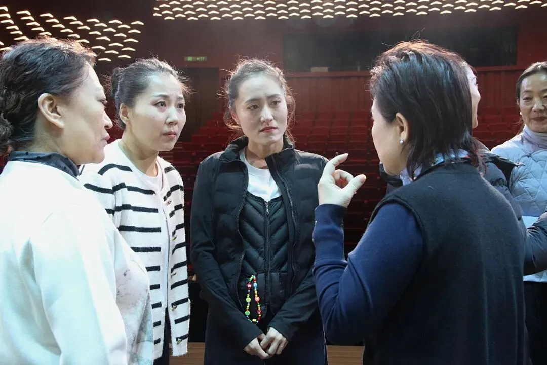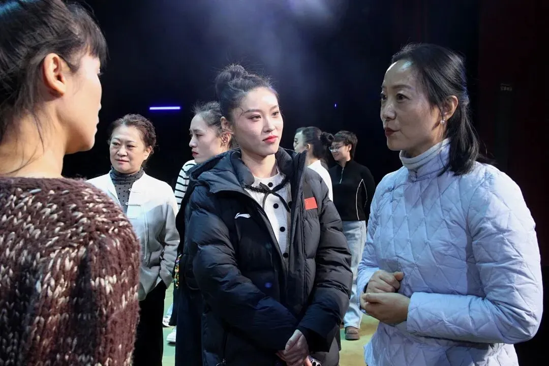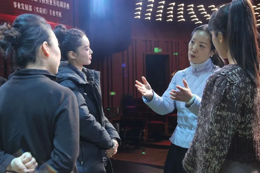 齐爱云老师不仅以专业眼光担任艺术考核评委,更在考核结束后登台开讲,深情讲述从艺数十载的初心与磨砺,现场示范教学,亲自指导实验团青年演员身段与神韵。
