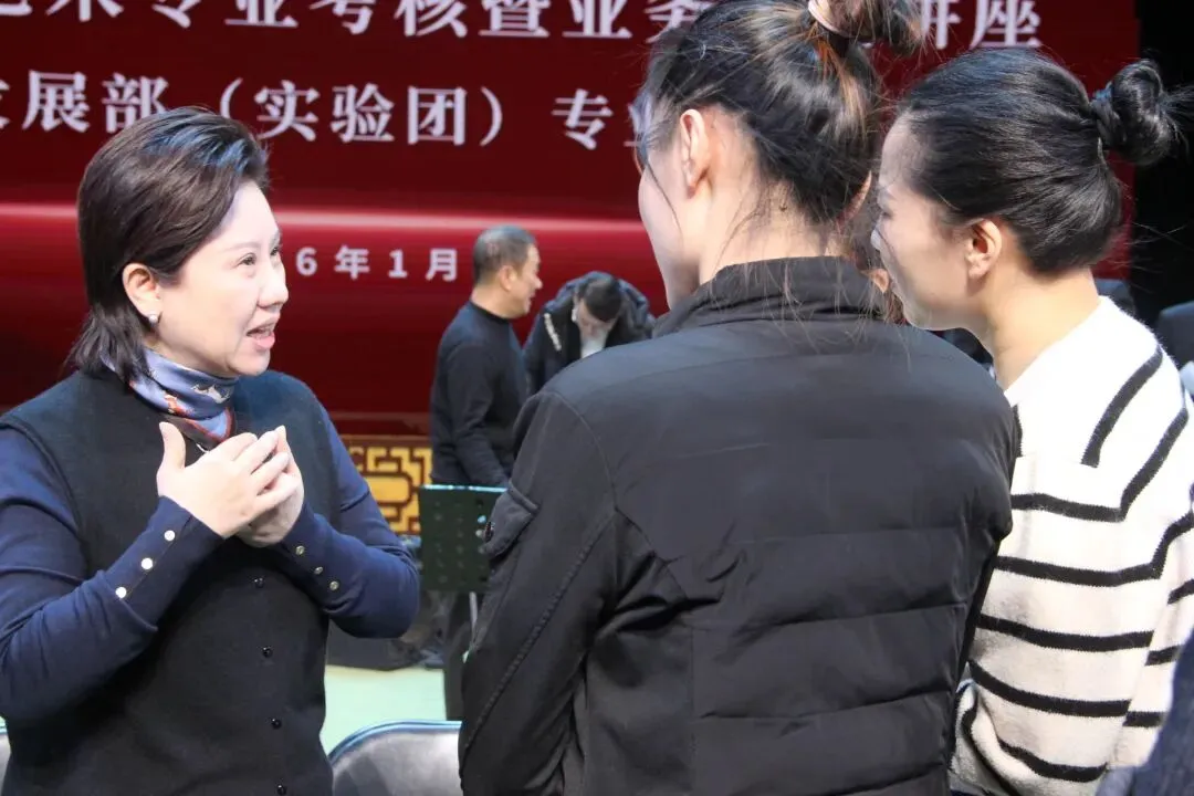 会后,我院青年演员们怀着热切与赤诚,主动围拢在老师身边,展开了一场超越舞台、深入艺心的亲切交流。