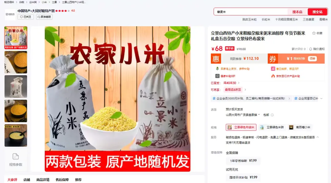 中国特产·大同好粮特产馆依托“大同好粮区域公用品牌+企业子品牌”的双轮驱动模式,整合大同市内优质农产品资源,搭建起宣传售卖大同好粮线上平台。店铺的运营标志着我市农业产业从“卖资源”向“卖品牌”的战略跨越出关键的一步。