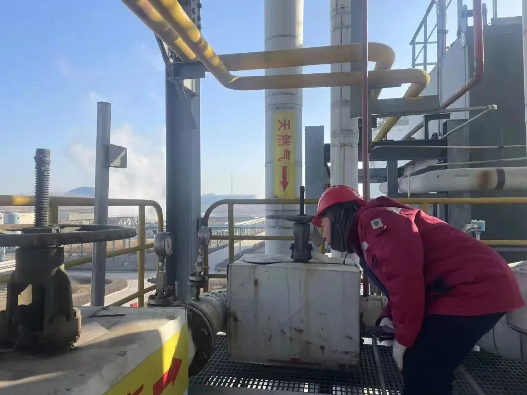 正午时分,短暂的暖阳没能驱散严寒。巡检人员又开始完成一小时一轮设备巡检,由于早晚温差大,阀门、液位计可能会因为热胀冷缩的情况,而出现漏点或者数据传输不准确,他们爬上爬下,仔细检查罐体阀门、液位计和紧急切断装置,每一个细节都不放过。他们总是说“一个不起眼的小环节出错,就可能酿成大问题”。