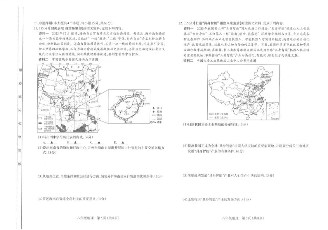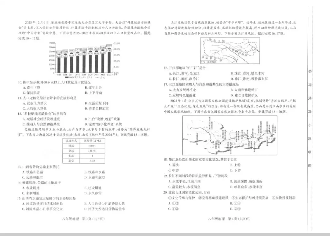 >太原市2025~2026年期末考试八年级地理试卷及答案
