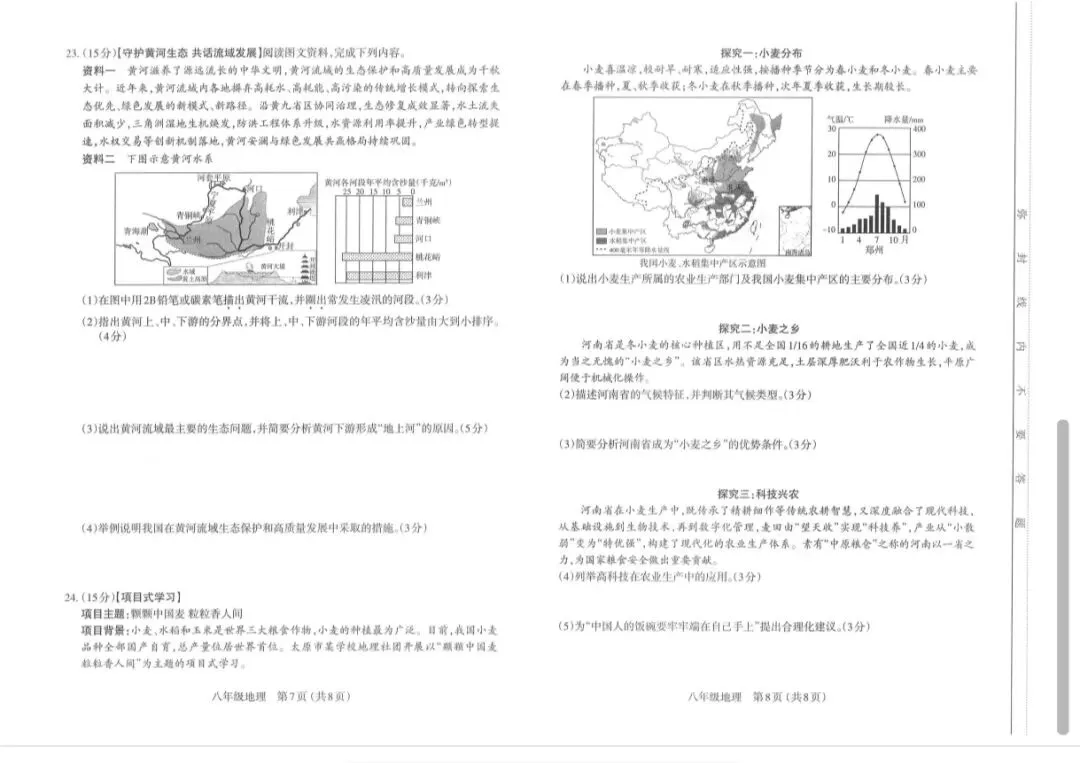 太原市2025~2026年期末考试八年级地理试卷及答案