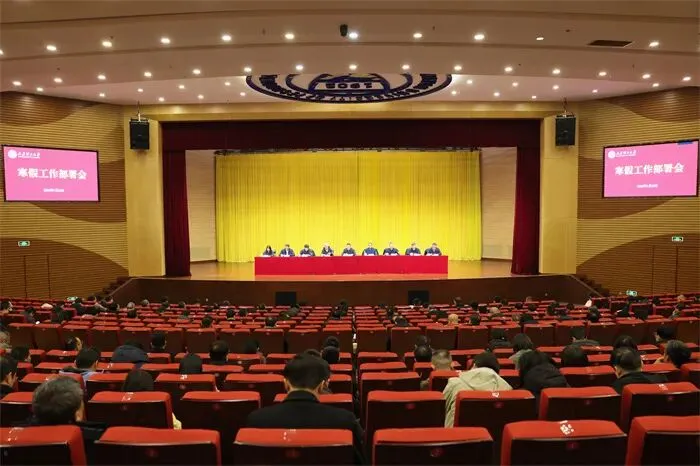 1月26日下午,学校在明向校区学生活动中心报告厅召开2026年寒假工作部署会,全面安排假期重点工作。校党委书记沈兴全、校长孙宏斌出席会议并讲话。校党委常委、省纪委监委驻校纪检监察组组长李晓谦,校党委常委、副校长王志华分别就廉洁纪律和校园安全作出部署。全体在校校领导、副处级以上干部参加会议。会议由校党委常委、副校长任喜莹主持。
