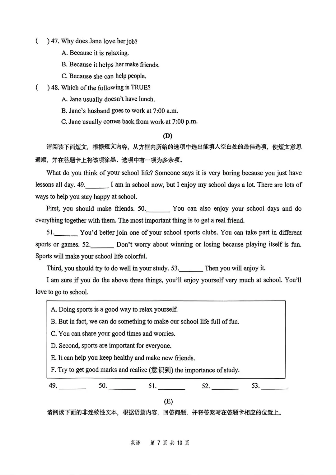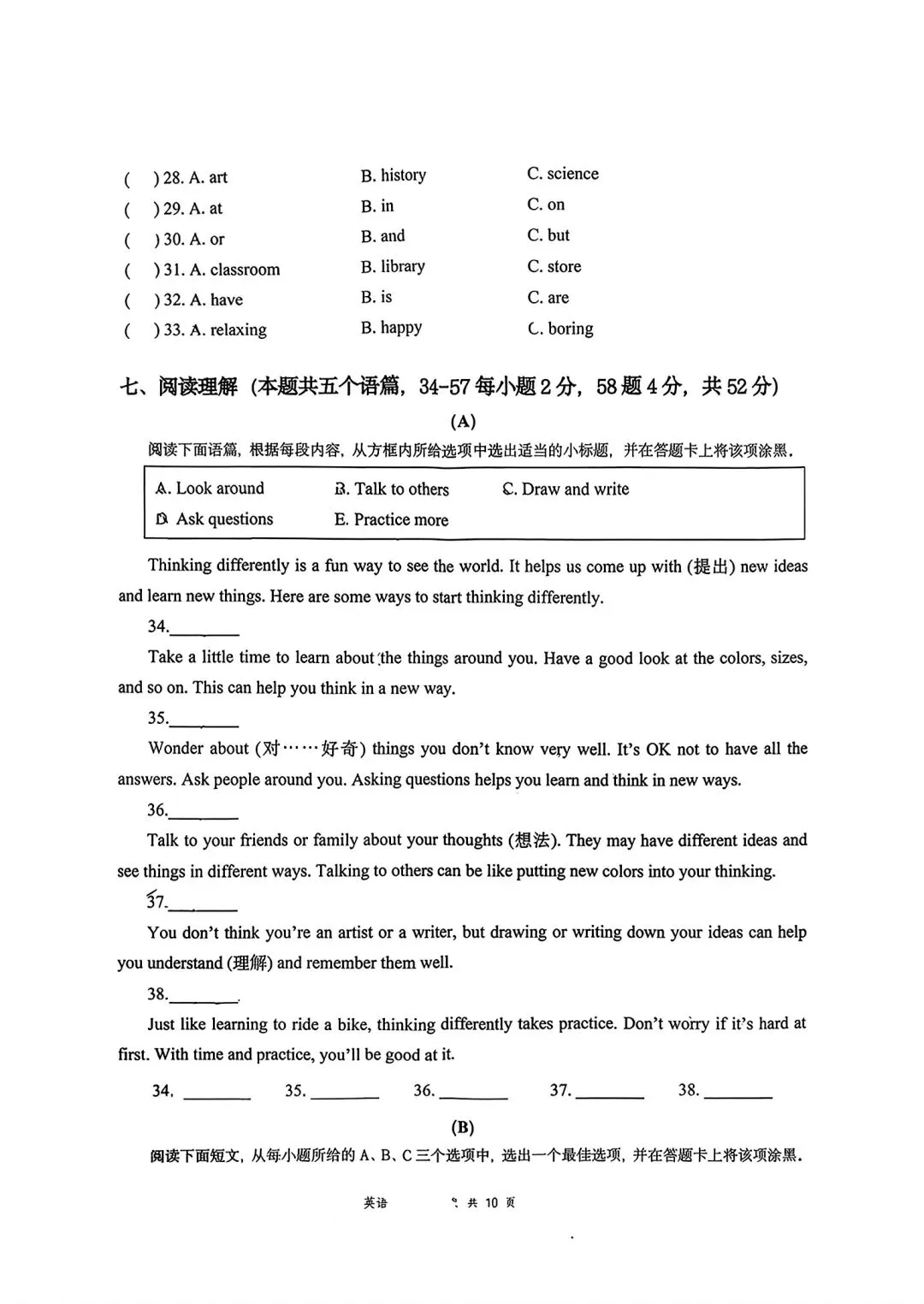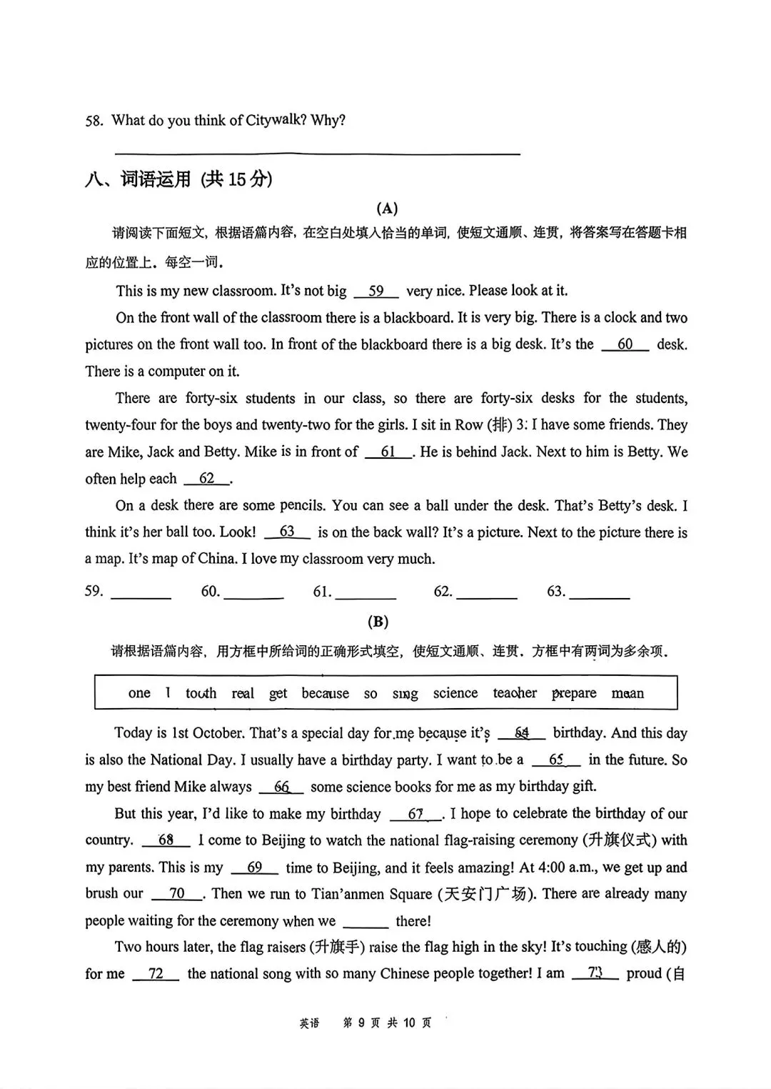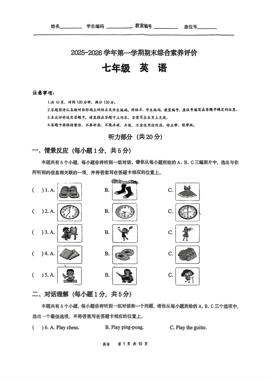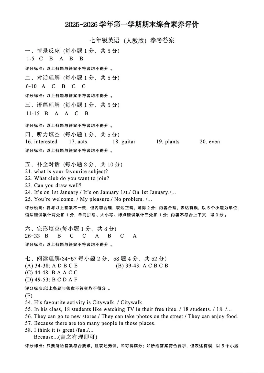 >【英语】 2025-2026 学年大同一中七年级期末试卷(含答案)