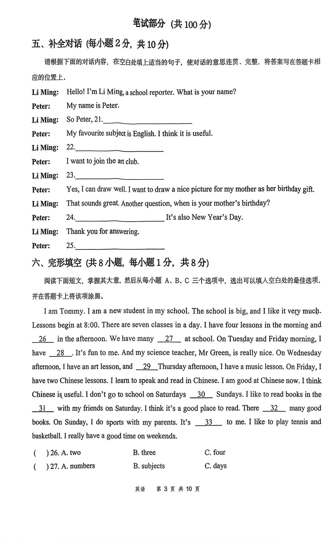 【英语】 2025-2026 学年大同一中七年级期末试卷(含答案)