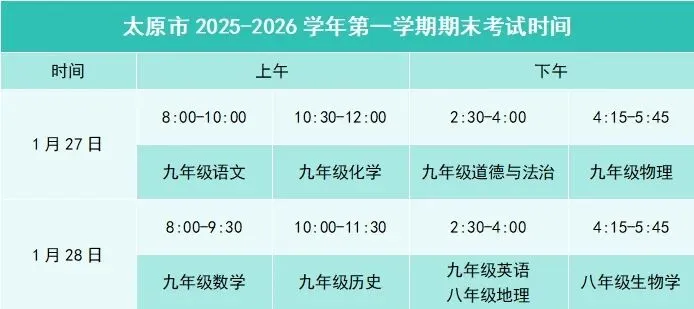 【初三期末】太原25-26学年上学期期末试题及答案(全七科)已更新!