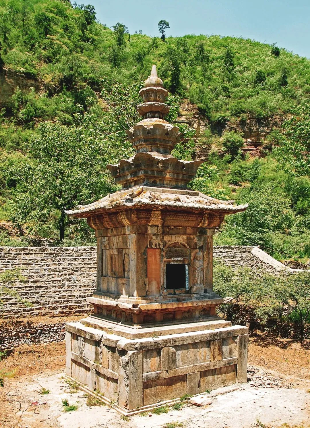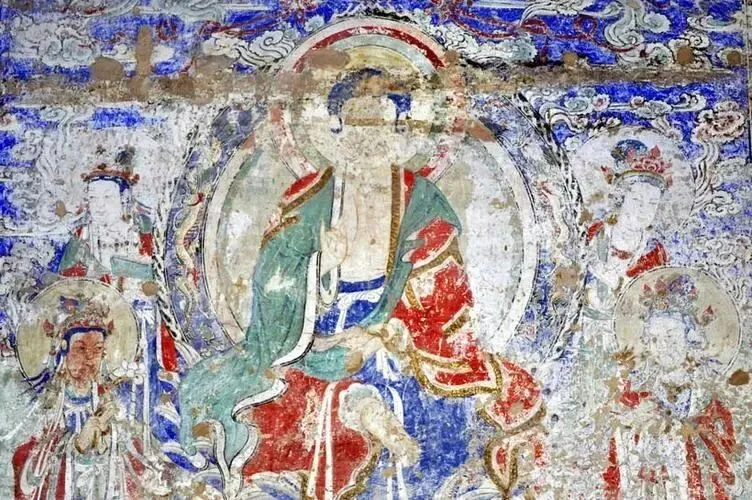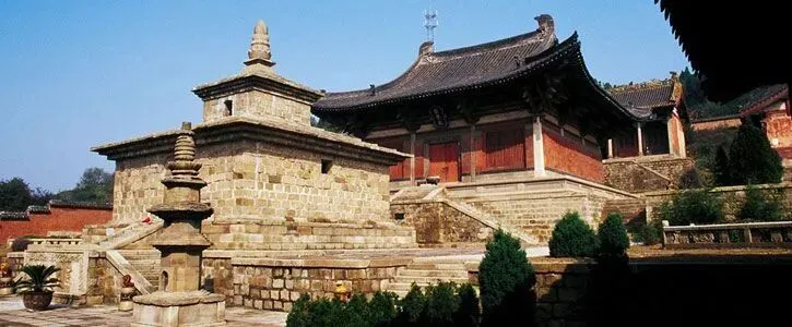 ▲法兴寺自然灯塔,在国内仅存同类三塔中,唯此保存完整▲龙门寺大雄宝殿内壁画
