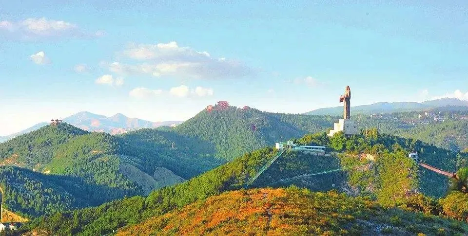 ▲ 在老顶山炎帝像顶,鸟瞰长治全景尽收眼底,纵观老顶五峰浮现云端▲长治武乡的板山到黎城阳坡、广志山一带的山体,是典型的岭脊型墙状山