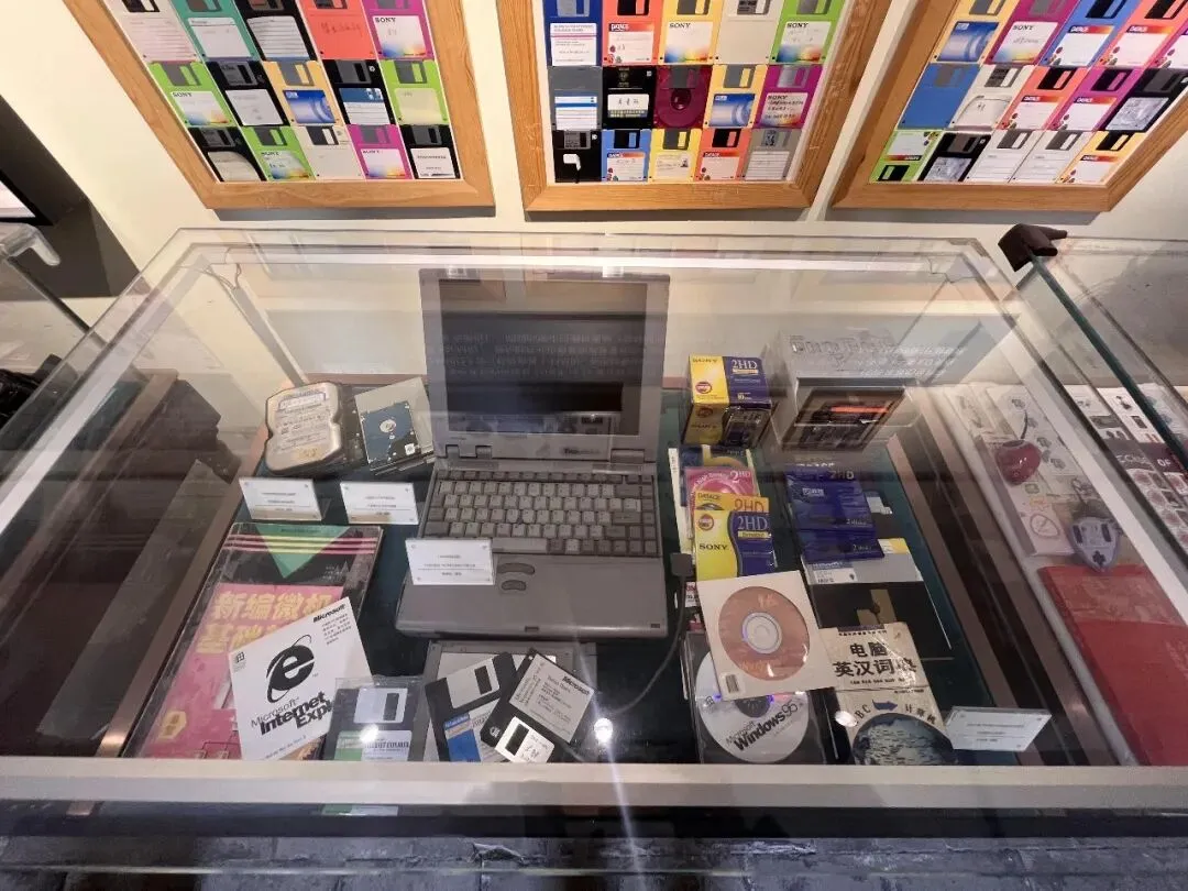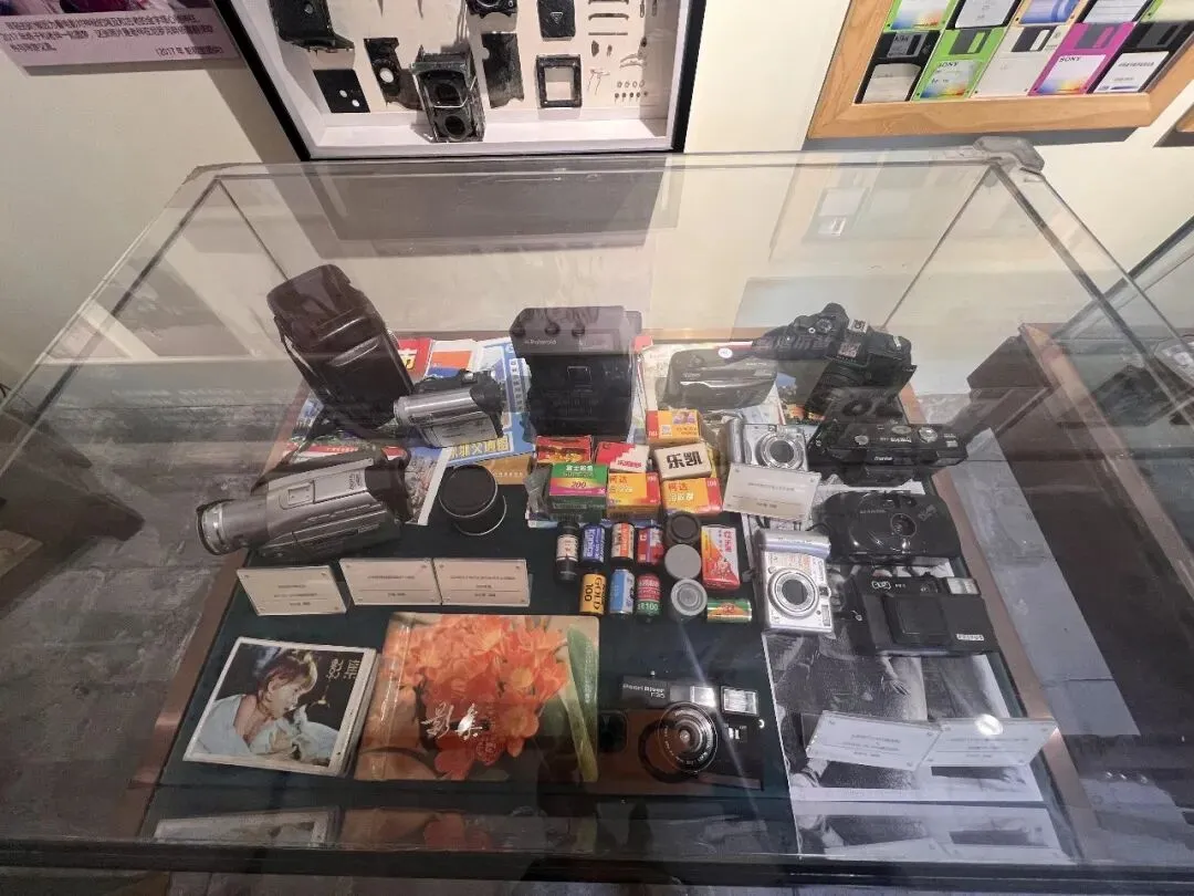 现在南肖墙关帝庙除中院的正殿外,其余建筑被打造成了太原城市记忆馆,以老物件、旧照片以及文献资料展示了太原从1949年建国后到现在的发展变迁,侧重于人们日常生活的衣、食、家俱家电等。按时间顺序分为五个单元:新生·希望(1949-1959)、理想·探索(1960-1977)、开放·变革(1978-1991)、生活大爆炸(1992-2012)、锦绣太原(2013-),于我而言,前两个单元的老物件纯粹是历史,从第三单元起,记忆便被轻轻唤醒。那些立柜、斗柜、单缸洗衣机、老式座钟,还有小黑白电视机、半导体收音机,件件都眼熟得很,如今在孩子爷爷奶奶家,还能见到立柜和座钟的身影。到了第四单元,那摆着相机、摄像机和胶卷、相册的展柜,更是熟悉到骨子里,这些“过时”的相机、大部头相册如今依然占据了家里书柜的一整层;而厚重的笔记本电脑、一张张光盘和3.5英寸磁盘更是勾起我大学生活的回忆。