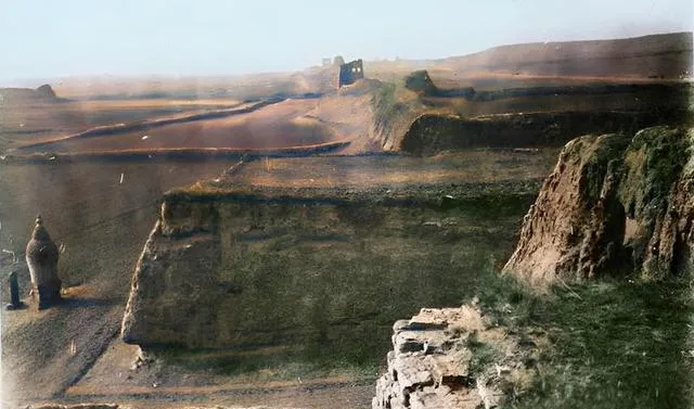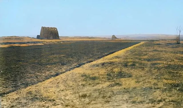 这段墙从中间裂开,口子不小,墙头却踩出两条路,前后都有脚印,里面是屋舍排列,外头是黄土地一望无边,风一过,草穗跟着抖,城和野就这么挨在一块儿。