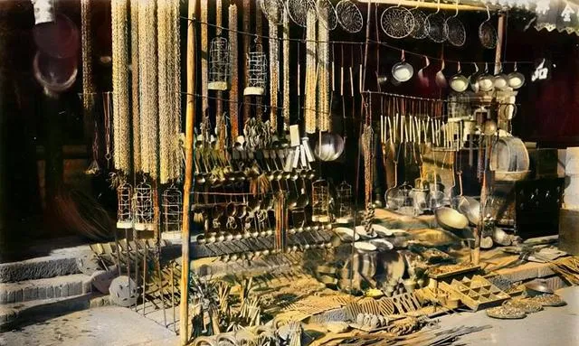 这个铺子叫五金店,勺子、笊篱、火钳、挂钩,从门梁上垂下来一排排,地上还摆着簸箕和筛子,老板拿根细杆挑给你看,哪样掂在手里最合适,一抓就知道,现在逛超市推着车,虽方便,少了这点掂量的乐趣。