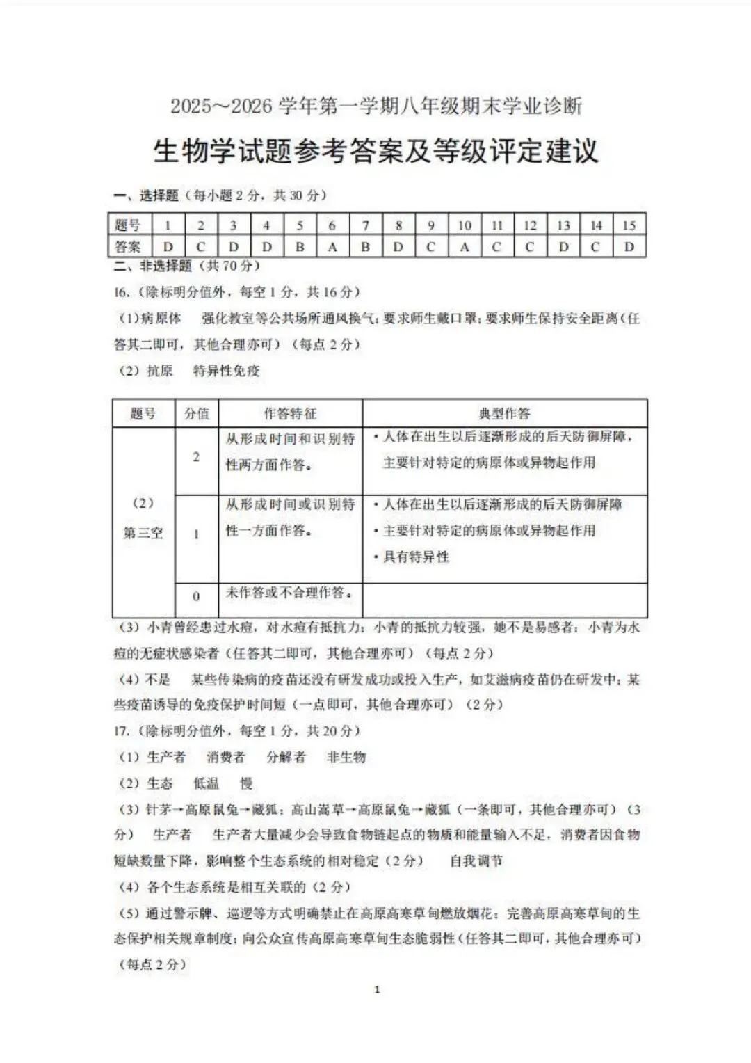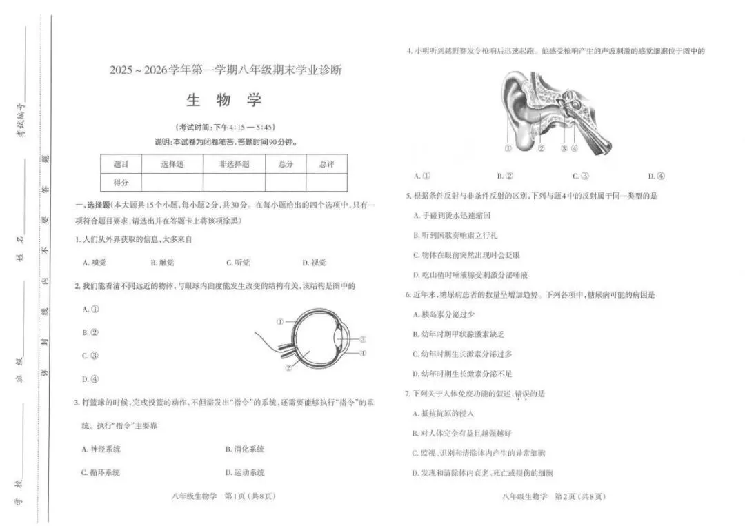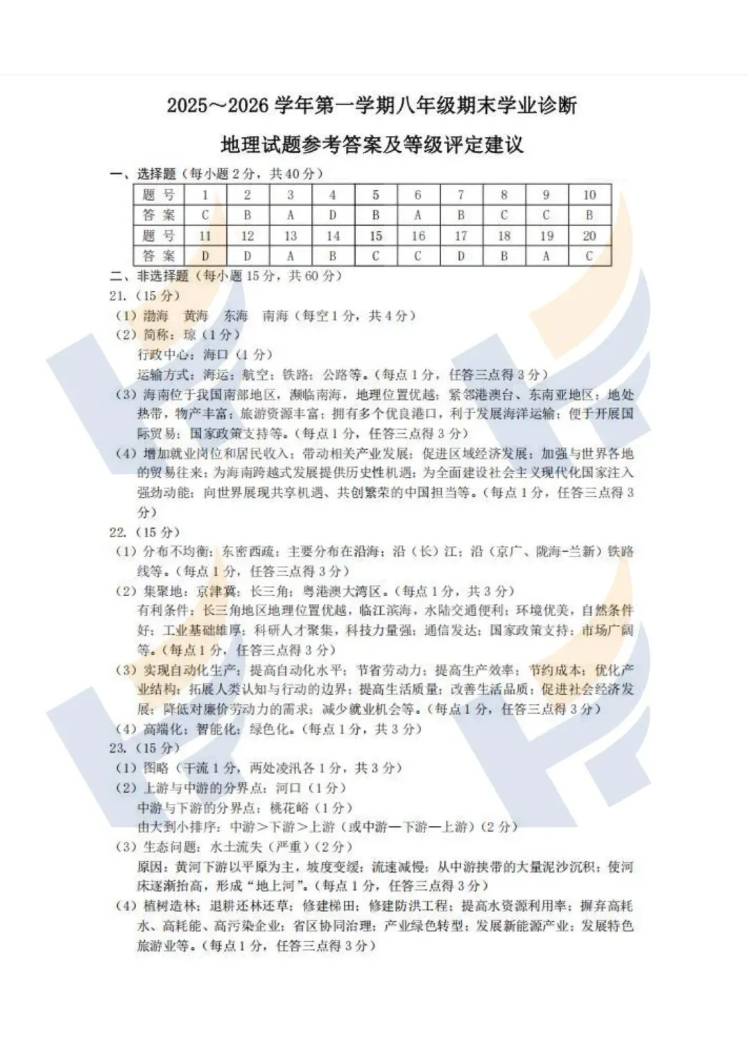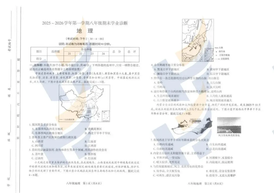 >【最新最全】2025-2026学年太原初二期末学业诊断考试试卷及答案(文末领取电子版)
