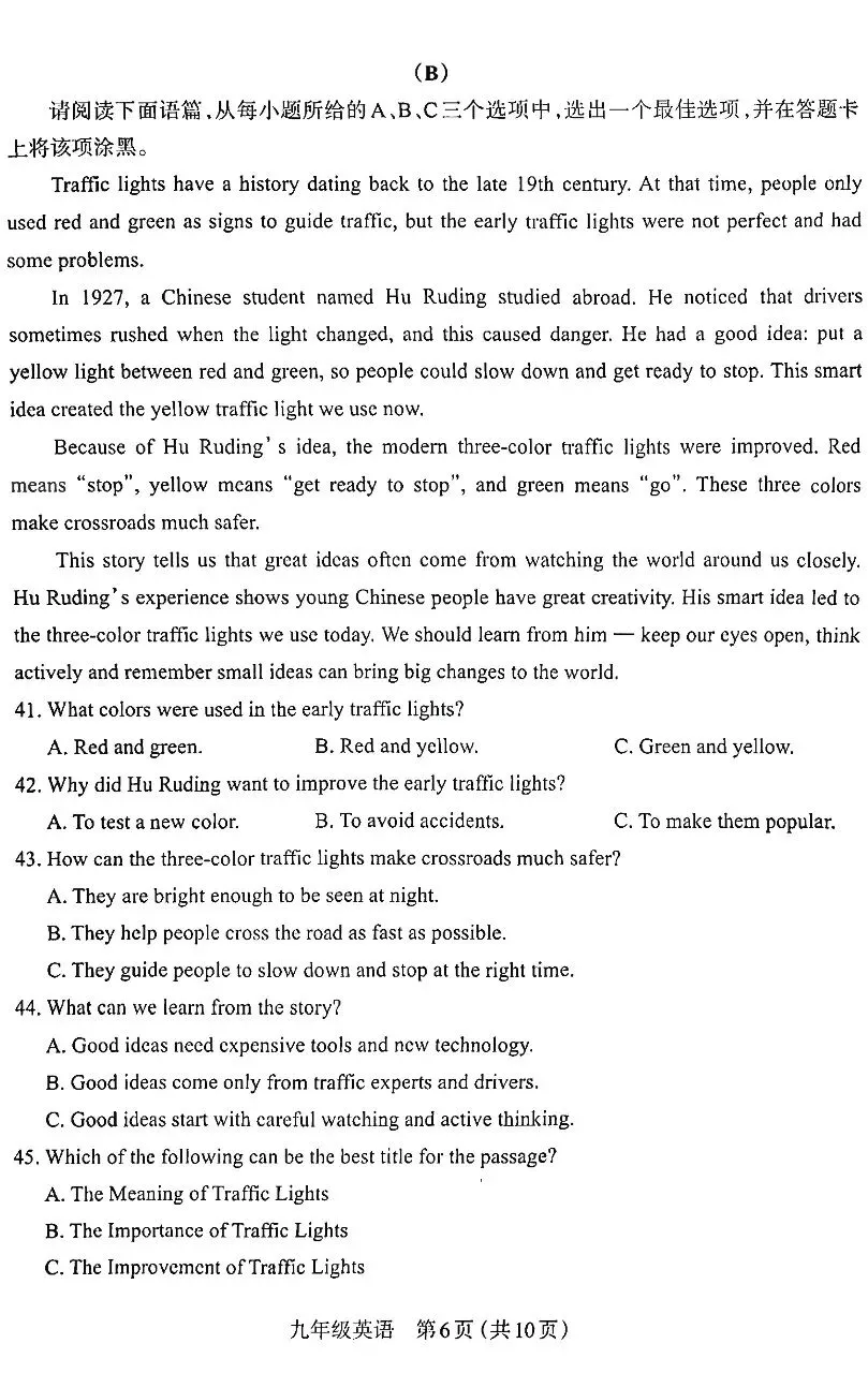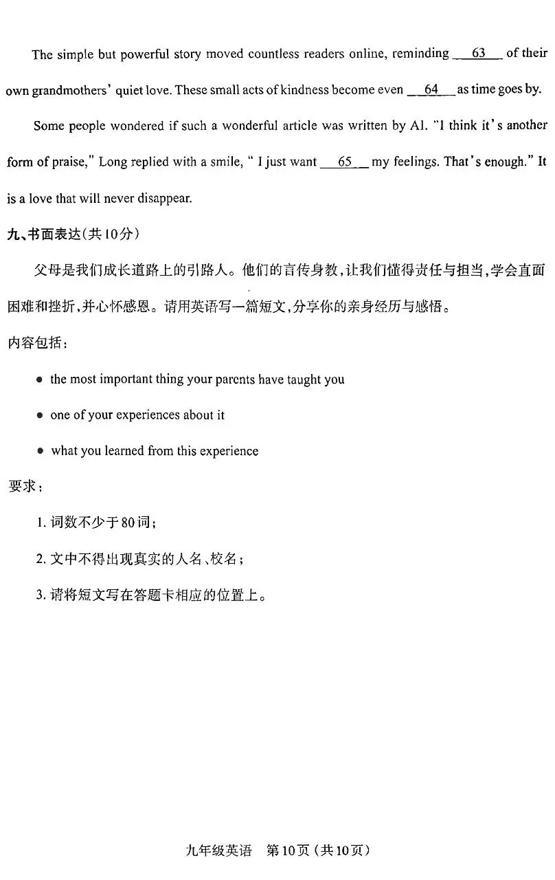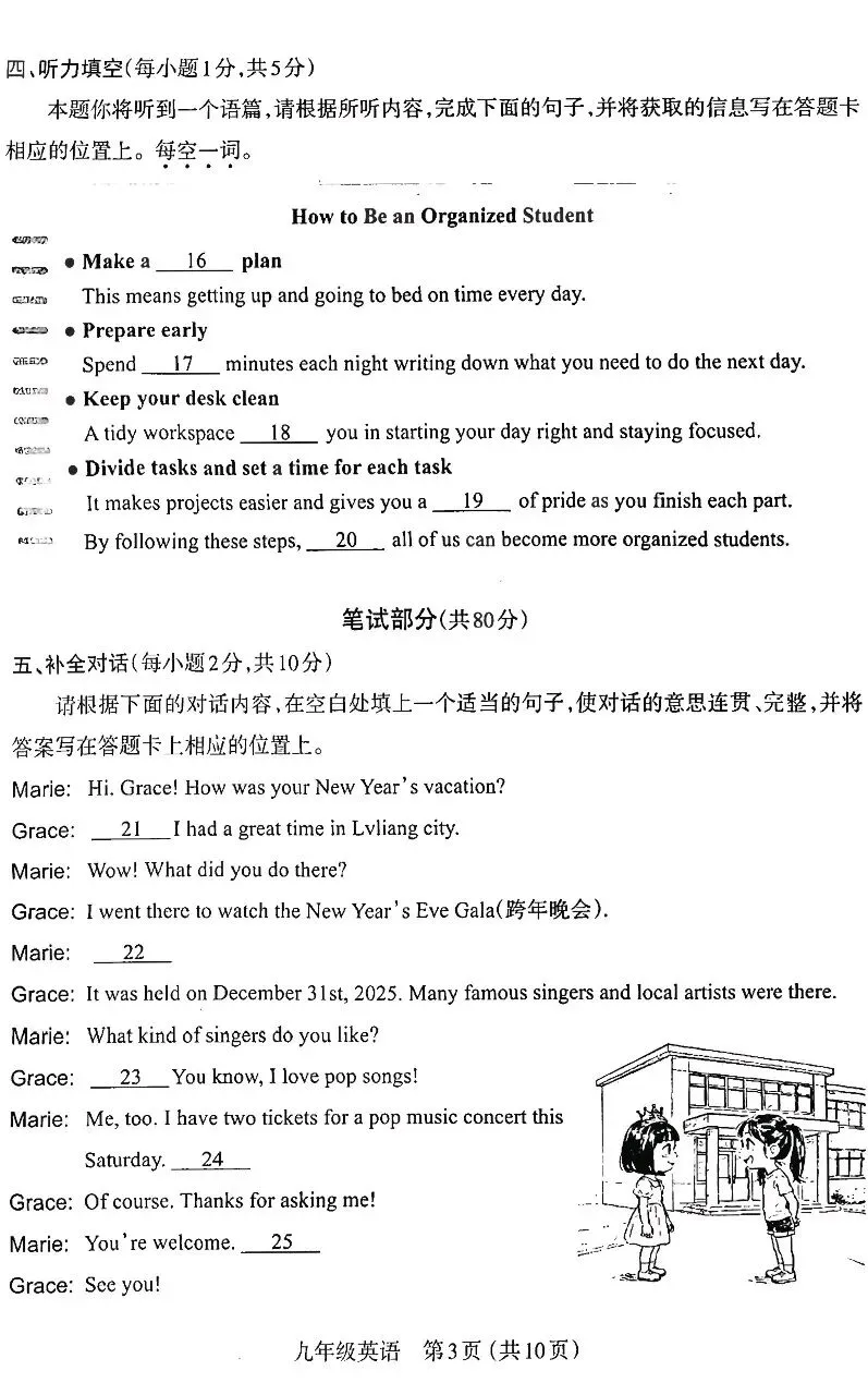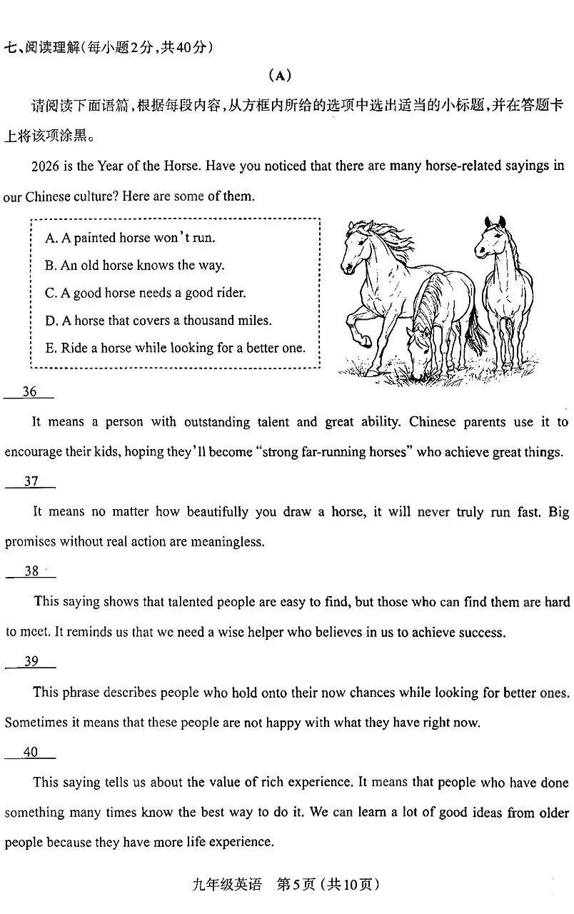 2025~2026学年第一学期九年级期末学业诊断英语试题参考答案
