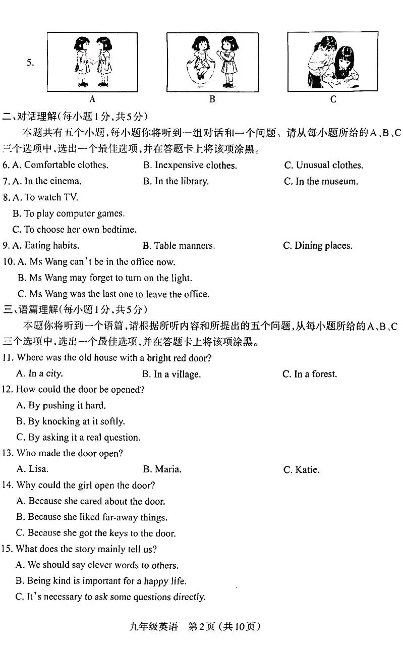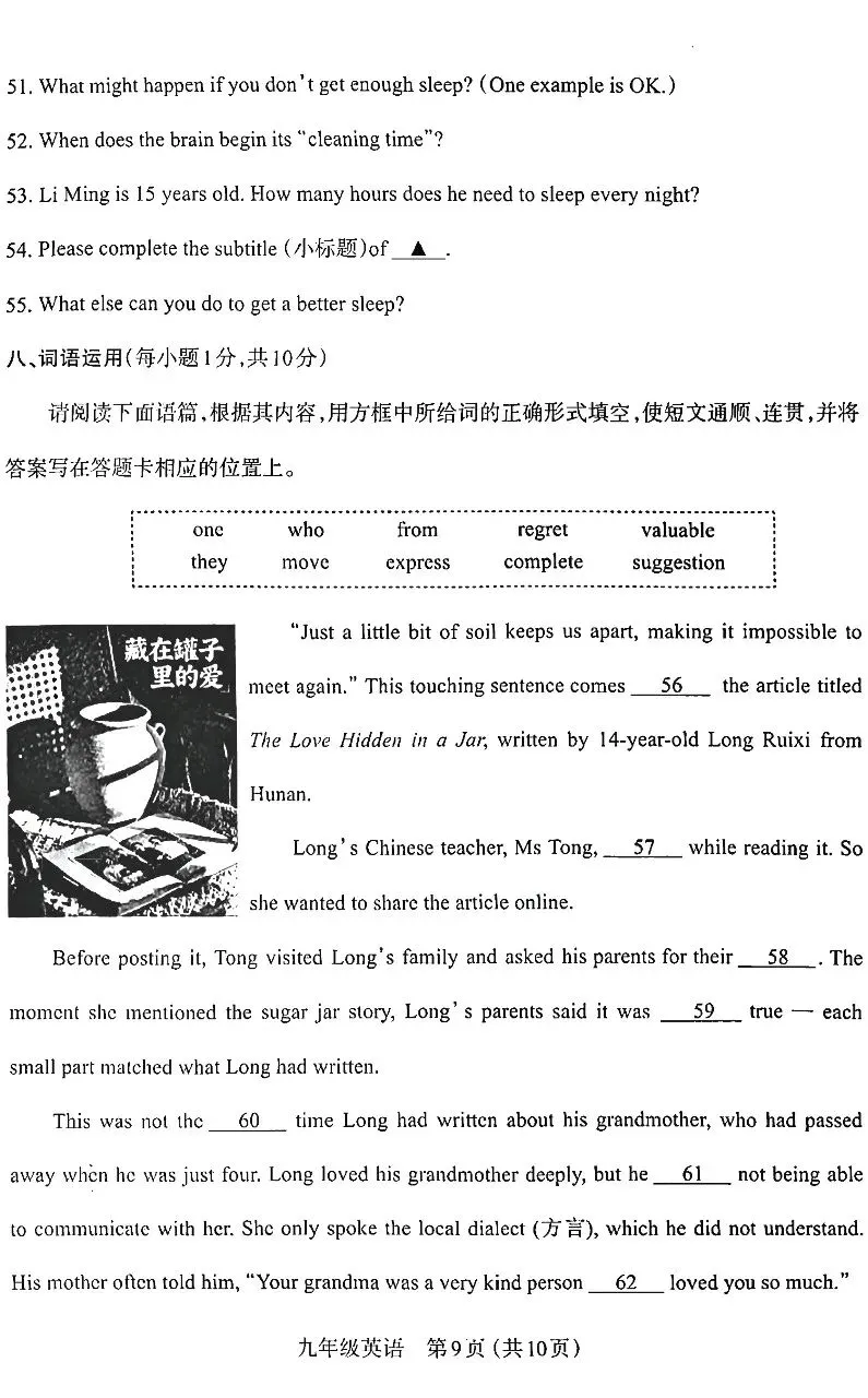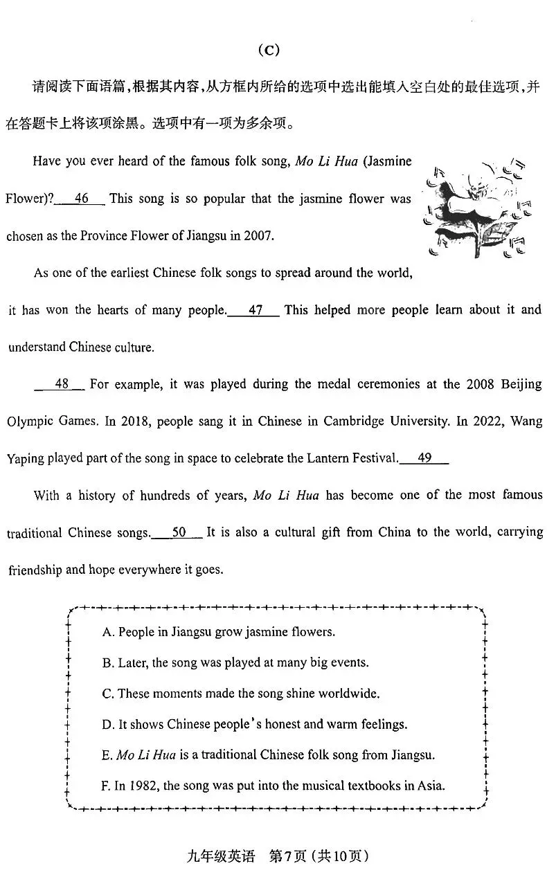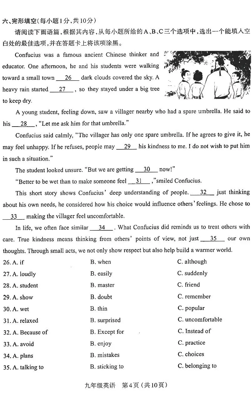 2025~2026学年第一学期九年级期末学业诊断英语试题参考答案