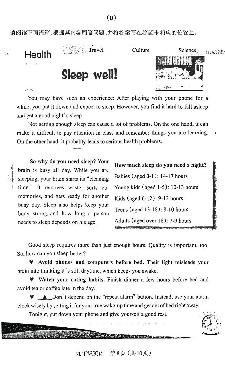 评分说明:只要答案符合题意,表达正确,即可得满分。以5个小题为单位,不影响意思表达的语法错误,累计两处扣1分;单词拼写错误,累计两处扣1分。