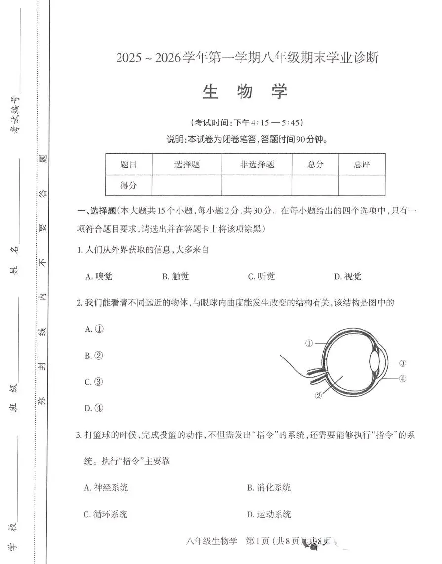 (6)设置定时提醒,控制使用电子设备的时间;眼睛与电子设备屏幕保持合理距离;不要在光线暗的地方使用电子产品(任答其二,其他符合题意亦可)(每点2分)