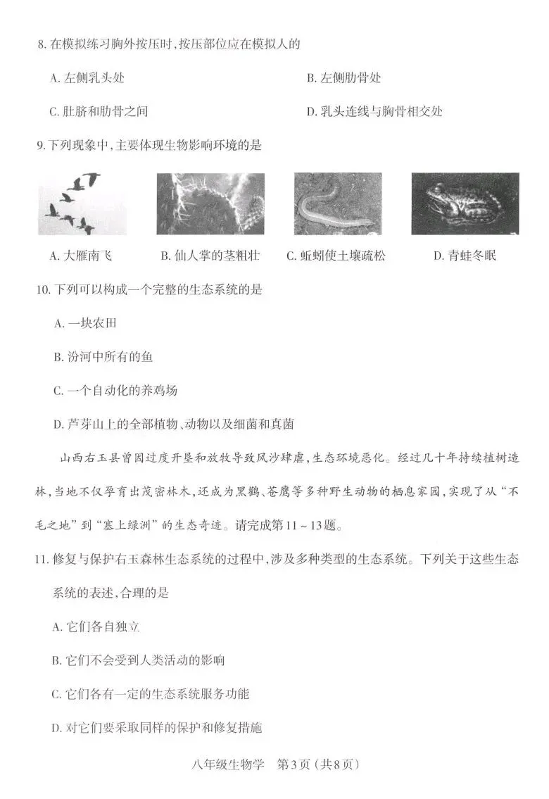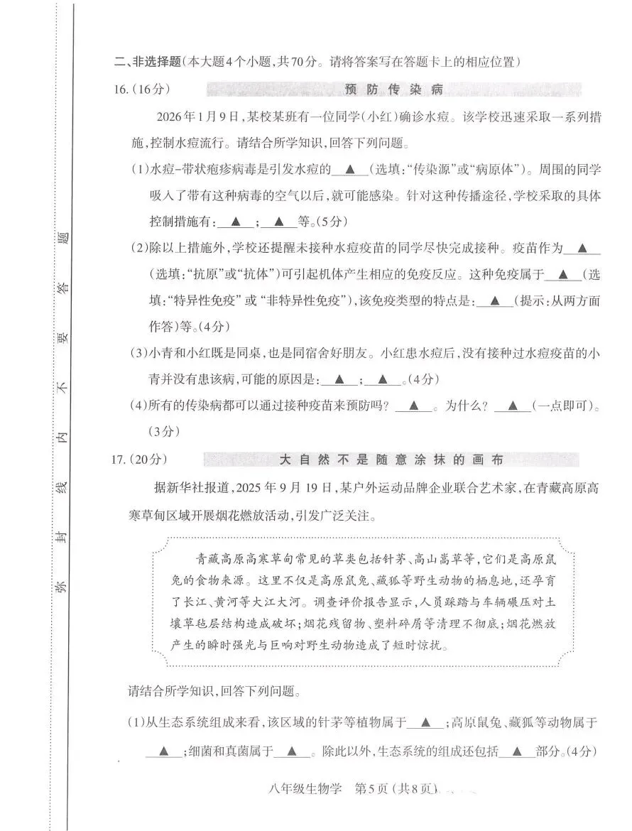 (5)长期处在二手烟环境中会影响肺的健康吗;长期生活在噪声环境中会影响人的听力吗(一个即可,其他合理亦可)(2分)