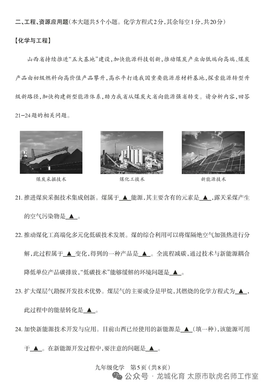 试题以山西煤炭产业升级、新能源应用为情境,围绕“化学观念、科学思维、科学探究与实践、科学态度与责任”四大核心素养设计,完全符合新课标中“以核心素养为导向”的课程目标。例如,第21题对煤的能源分类和元素组成的考查,落实了“化学观念”;第23题书写甲烷燃烧的化学方程式,体现了“科学思维”中的符号表征;第24题对新能源开发问题的探讨,践行了“科学态度与责任”中的可持续发展理念。