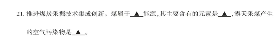 典型错误:写成可再生能源或写错别字,如“不可在生”;煤的主要元素写成“炭”;露天采煤的空气污染物写成CO、SO2等气态污染物或书写不规范,如pm2.5、颗粒物。