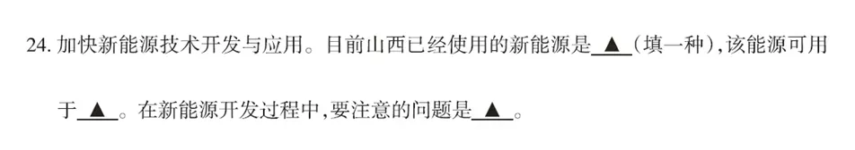 错因分析:学生对山西已使用的新能源不清楚,学生易混淆新能源与传统能源的特征,将化石能源开发的注意问题直接套用至新能源领域,缺乏辩证思维。