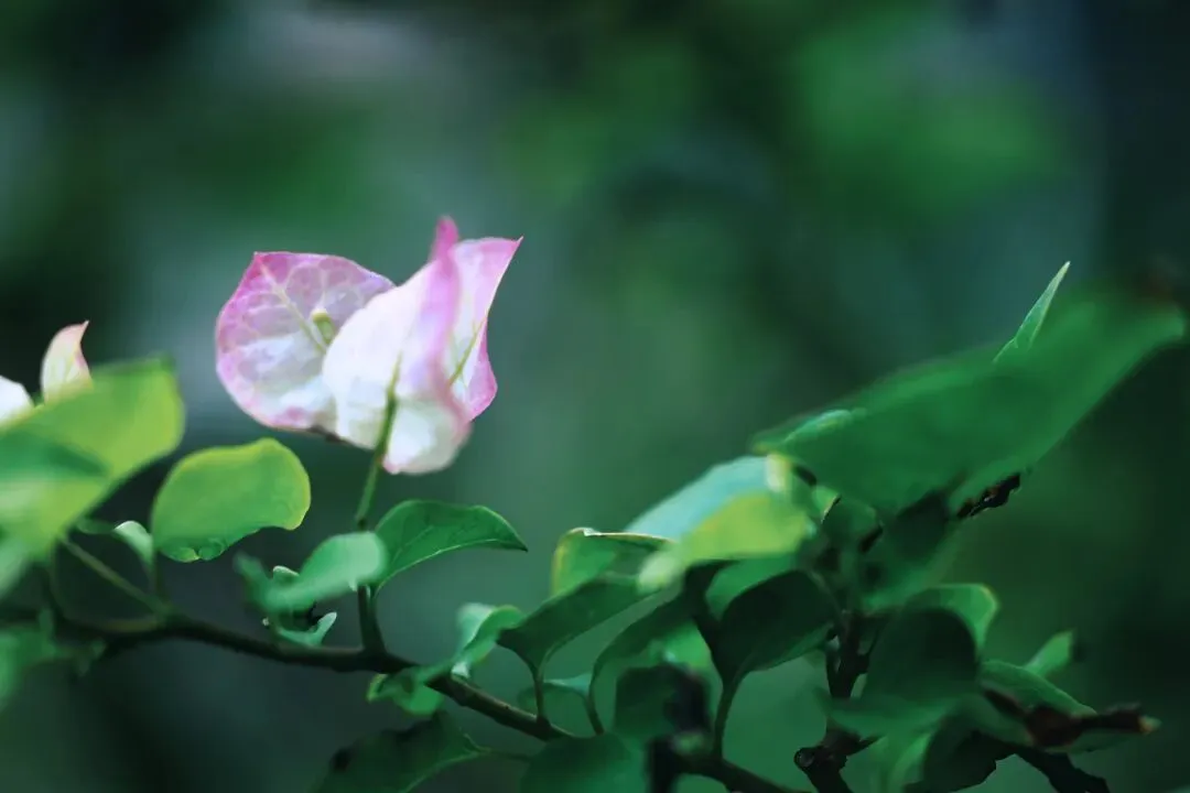 最妙的是躲在绿叶后面的,只露出半边粉脸,你不仔细找,它就不让你看见,它便不肯轻易亮相,带着几分南国独有的俏皮。