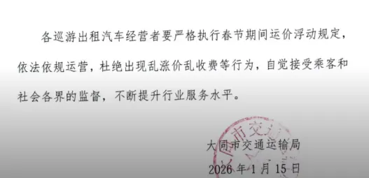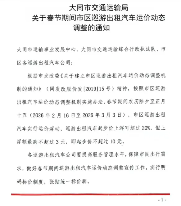 >大同:出租车运价调整通知!
