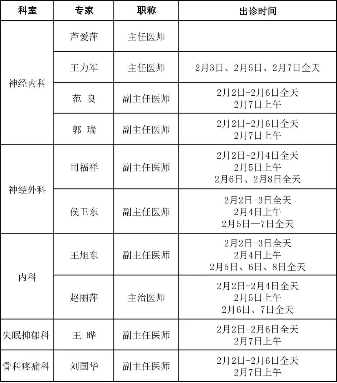 以下排班如有临时调整,以当日出诊信息为准,为方便就诊,诊前可致电前台: