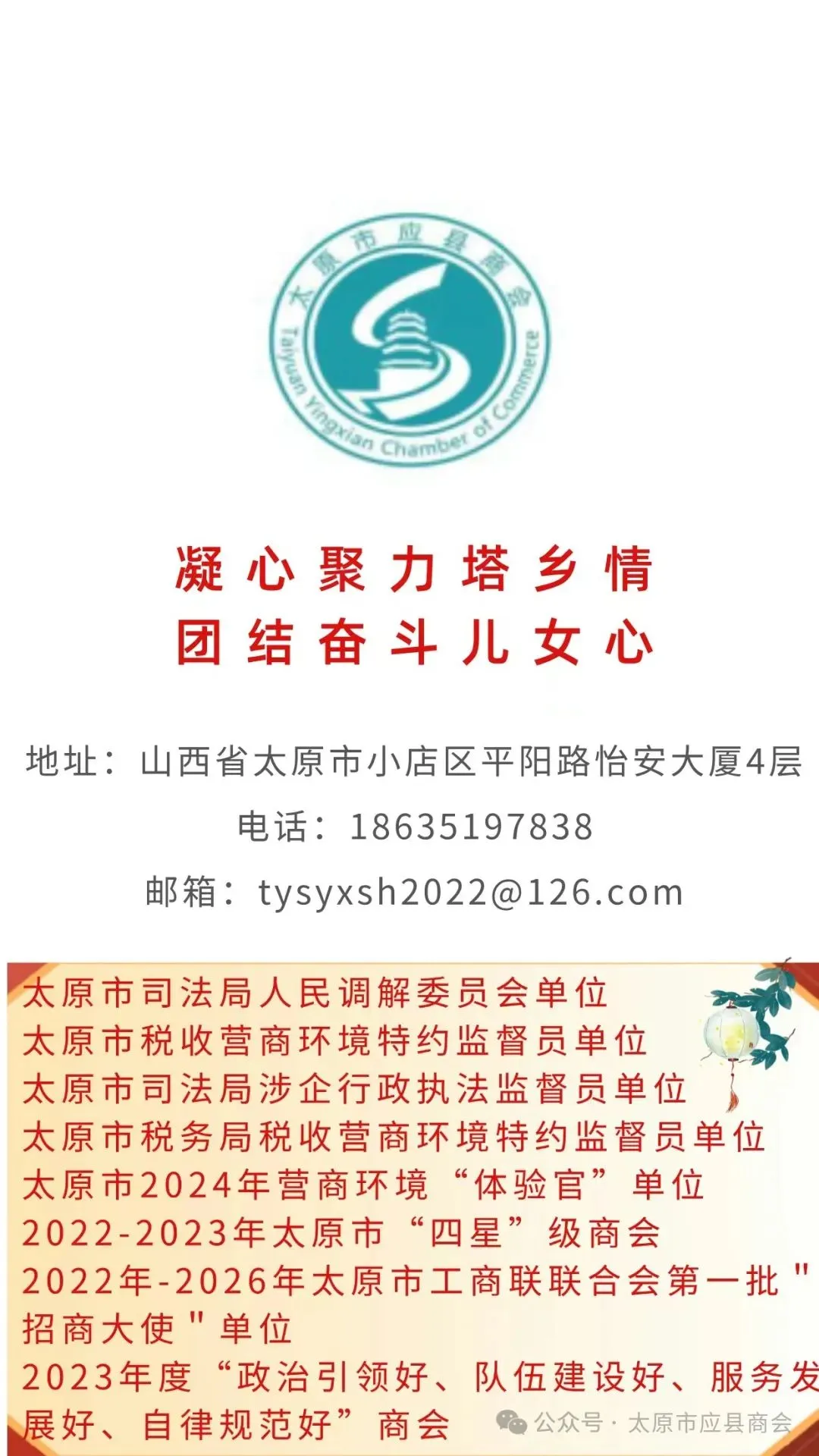 太原市应县商会对太原市十堰商会此次大会的圆满召开表示热烈祝贺,希望未来两地商会能加强交流联动,搭建资源共享平台,携手同行、共谋发展,在太原这片热土上实现互利共赢,共同书写商会发展的崭新篇章。