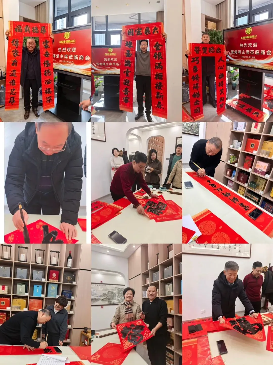 活动现场,一张张大红福字寓意吉祥,一副副定制春联承载期盼。会员们手捧墨香四溢的作品,脸上洋溢着喜悦。会员们纷纷说道“这不仅是一幅春联,更是一份值得收藏的艺术珍品,既装点了家门,又寄托了对新年的期盼,感受到了商会大家庭的温暖。”