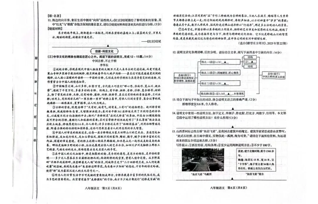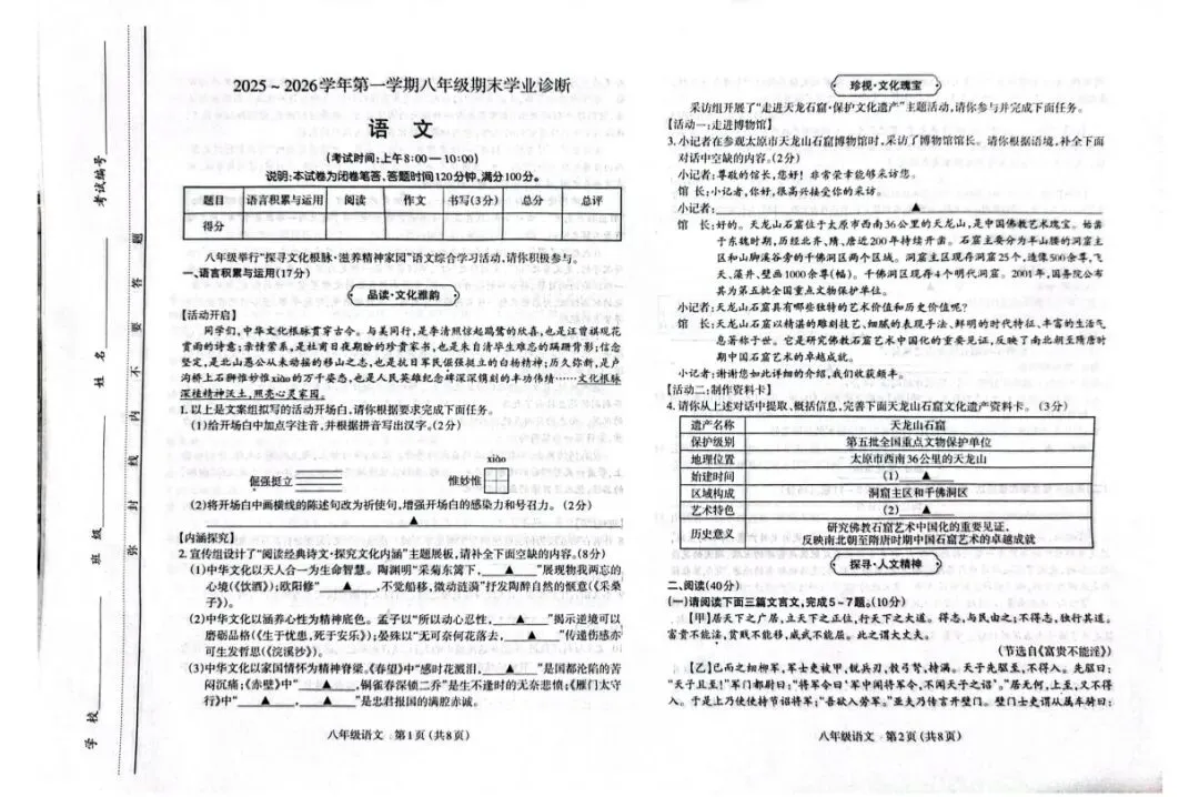 太原市2025~2026年期末考试八年级语文试卷及答案
