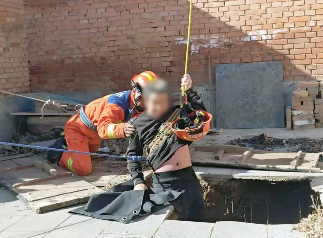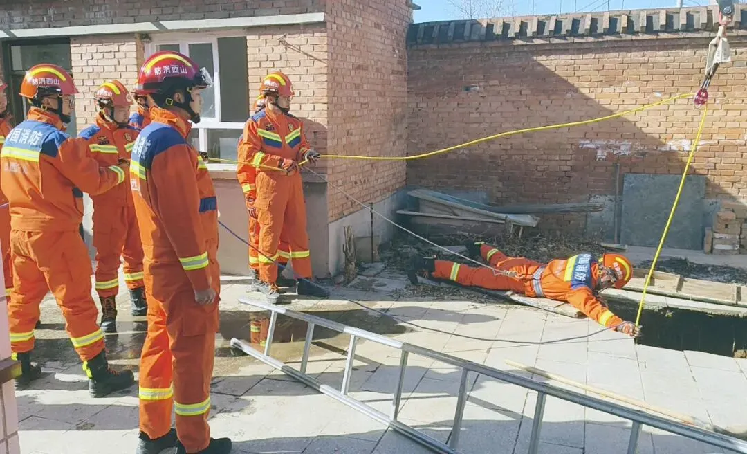 3.当坠井人员身体无行为能力,需要选择身材较小的救援人员,通过倒挂的方式进入深井,将他提拉出井。