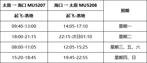 📅 执行日期:2026年2月6日-3月28日🔄 加密后,太原⇌海口实现每日航班覆盖,出行更灵活!