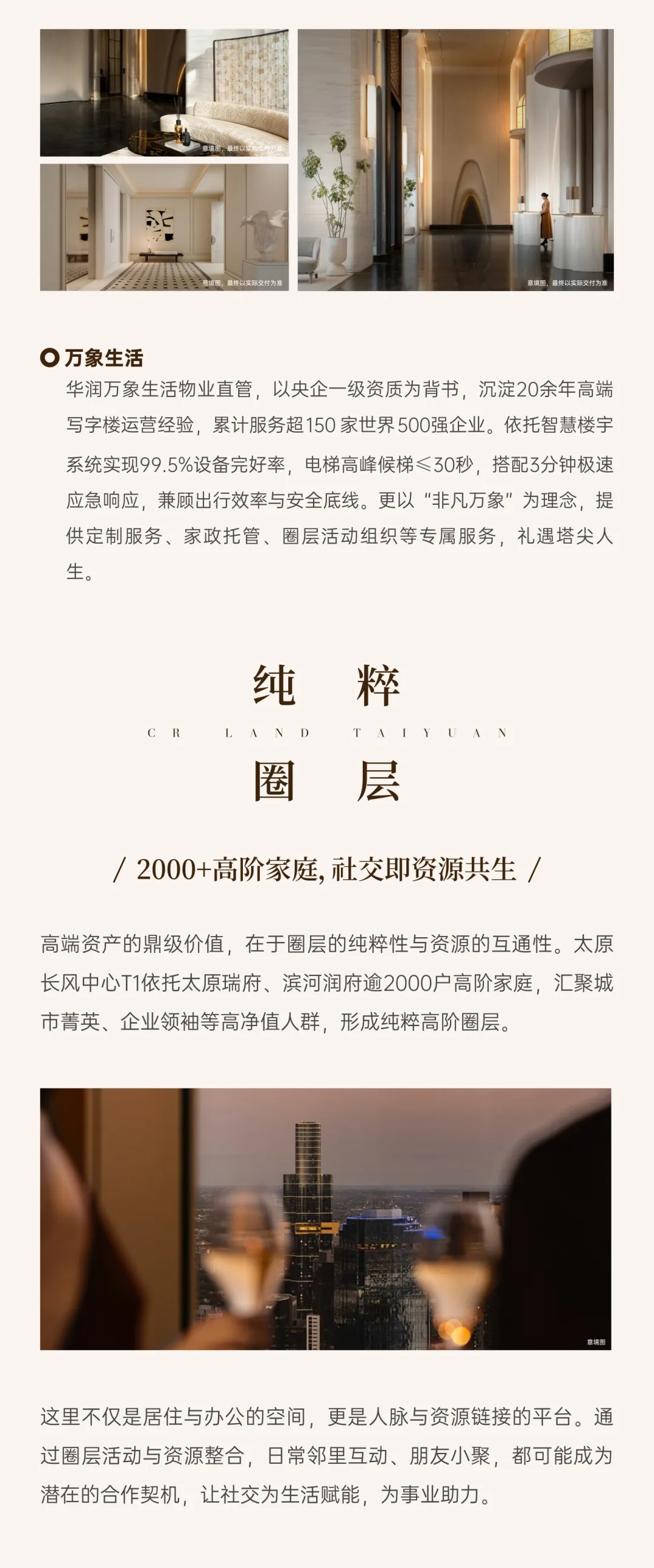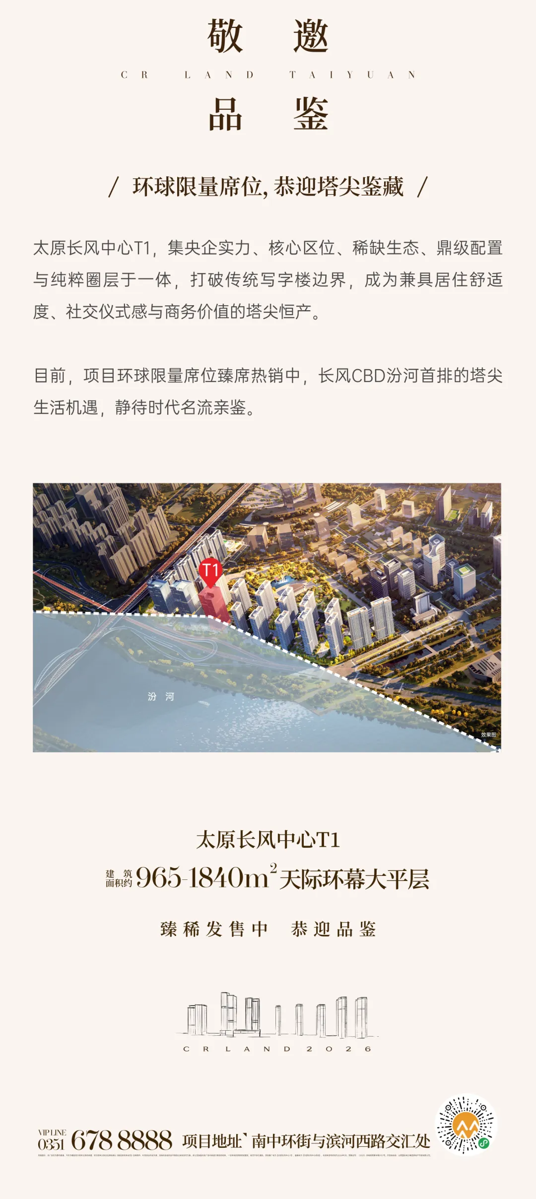 【免责声明】:本宣传资料为要约邀请,对双方不产生任何约束力,买卖双方的权利义务以最终签订的合同为准。本宣传资料中对项目周围环境、交通、规划及其它公共设施的介绍,旨在提供相关信息,不意味着本公司对此做出了承诺,具体应以官方地图或实际为准,以上信息为截止于2024年6月27日的情况。本宣传资料对项目周边学校教育资源的介绍,旨在提供相关信息,不意味着本公司对就学安排/入学资格作出承诺。教育资源的名称、办学性质、办学规模、学位设置、开学(班)时间,招生条件、收费标准及招生区域存在调整的可能,应以政府教育主管部门及办学方颁布的政策规定为准。本宣传资料有关项目及周边、商业服务设施的介绍,旨在提供未来规划示意展示,不意味着本公司对此做出了承诺,且部分内容规划尚未确定,后期存在不确定因素,具体以实际批准建设为准。后期有关商业服务设施实际经营主体可能根据其运营情况对经营业态、经营期限等作出调整,具体以实际经营情况为准。本宣传资料仅是对户型结构、功能、布局的示意,仅供客户参考,不作为交付标准,实际交付标准以买卖双方签订的《商品房买卖合同》及其附图约定为准。本宣传资料仅为要约邀请,具体活动详情请咨询现场工作人员。相关活动内容及规则可能会根据实际情况而发生变化,敬请留意最新宣传资料。本公司对活动享有在法律准许范围内的解释权。开发单位:山西国际电力集团房地产开发有限公司,项目推广名为【太原长风中心T1】,项目备案名:【太原长风中心项目】;制作时间:2026年1月。