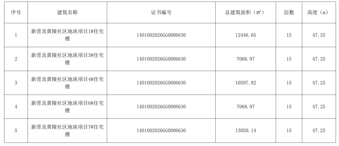 新营社区和黄陵社区都位于山西省太原市小店区黄陵街道,紧邻龙城大街、马练营路双主干道,地铁1号线黄陵站,距离太原南站与武宿机场较近,交通便捷。周边教育资源丰富,分布有太原师范学院附属小学、太原师范学院附属中学、太原五中、以及多所幼儿园等,涵盖学前教育至高中阶段,满足不同年龄段学生的教育需求。1月28日,太原市行政审批服务管理局发布了《关于新营及黄陵社区地块项目1#住宅楼、3#住宅楼、4#住宅楼、6#住宅楼、7#住宅楼建设工程规划许可证的公告》:项目名称:新营及黄陵社区地块项目1#住宅楼、3#住宅楼、4#住宅楼、6#住宅楼、7#住宅楼