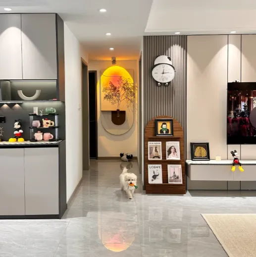 实用技巧:窗帘选落地款,高度从吊顶顶部算到地面,离地留1-2cm,宽度是窗户宽度的2倍,垂坠感强,还能拉高层高,避免做半高帘或罗马帘,割裂空间显压抑;灯具采用“大主灯+多辅灯+氛围灯”的分层设计,主灯尺寸按空间计算,客厅20㎡选直径60-80cm的主灯,主灯用3500K暖白光,氛围灯用2700K暖黄光,避免全用冷白光,既显高级又贴合居住氛围;装饰品聚焦“人眼黄金高度”(1.5-1.7米),沙发背景墙挂1-2幅画,床头墙装壁灯,避免堆砌过多小摆件,既减少积灰隐患,又能凸显空间重点。此外,软装可选用成品家具替代部分定制,比如实木餐边柜、复古书架,比定制更有设计感,还不容易撞款,性价比更高。
