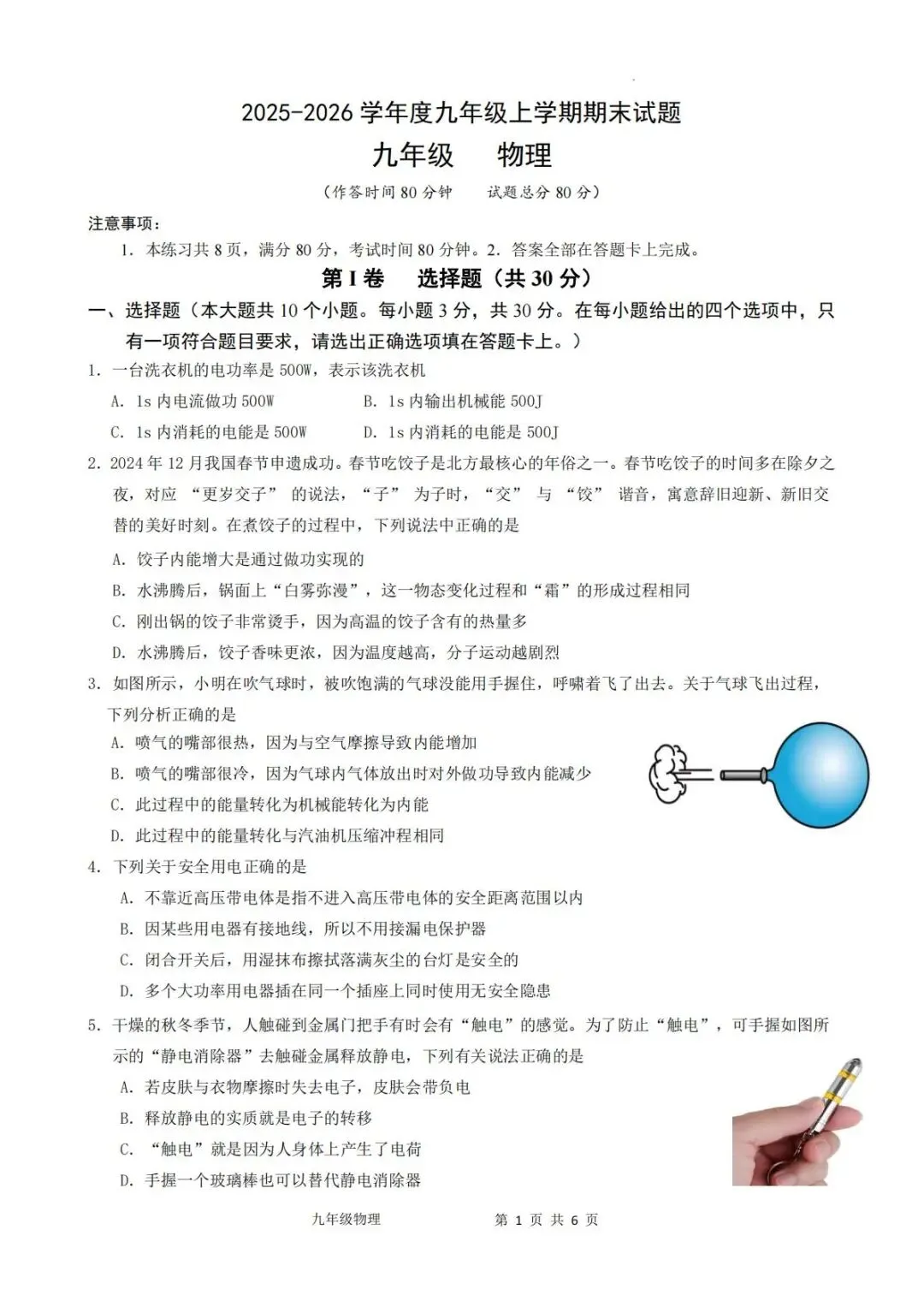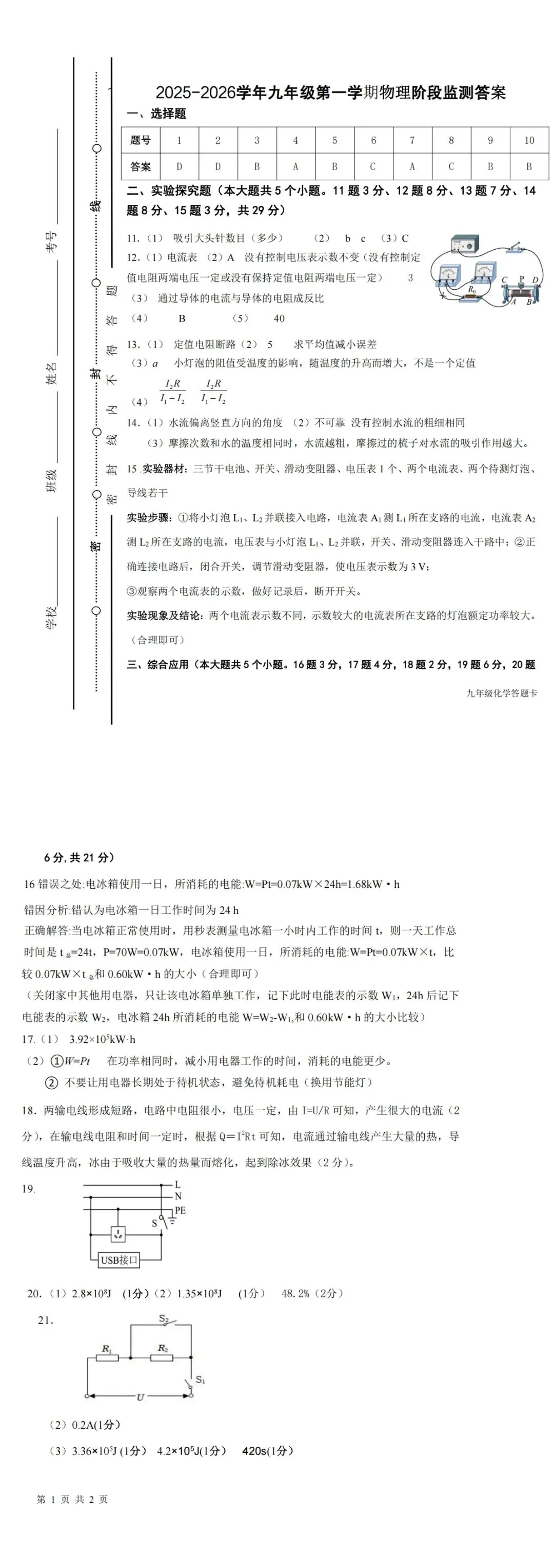 >大同物理2025-2026学年九年级上学期期末考试