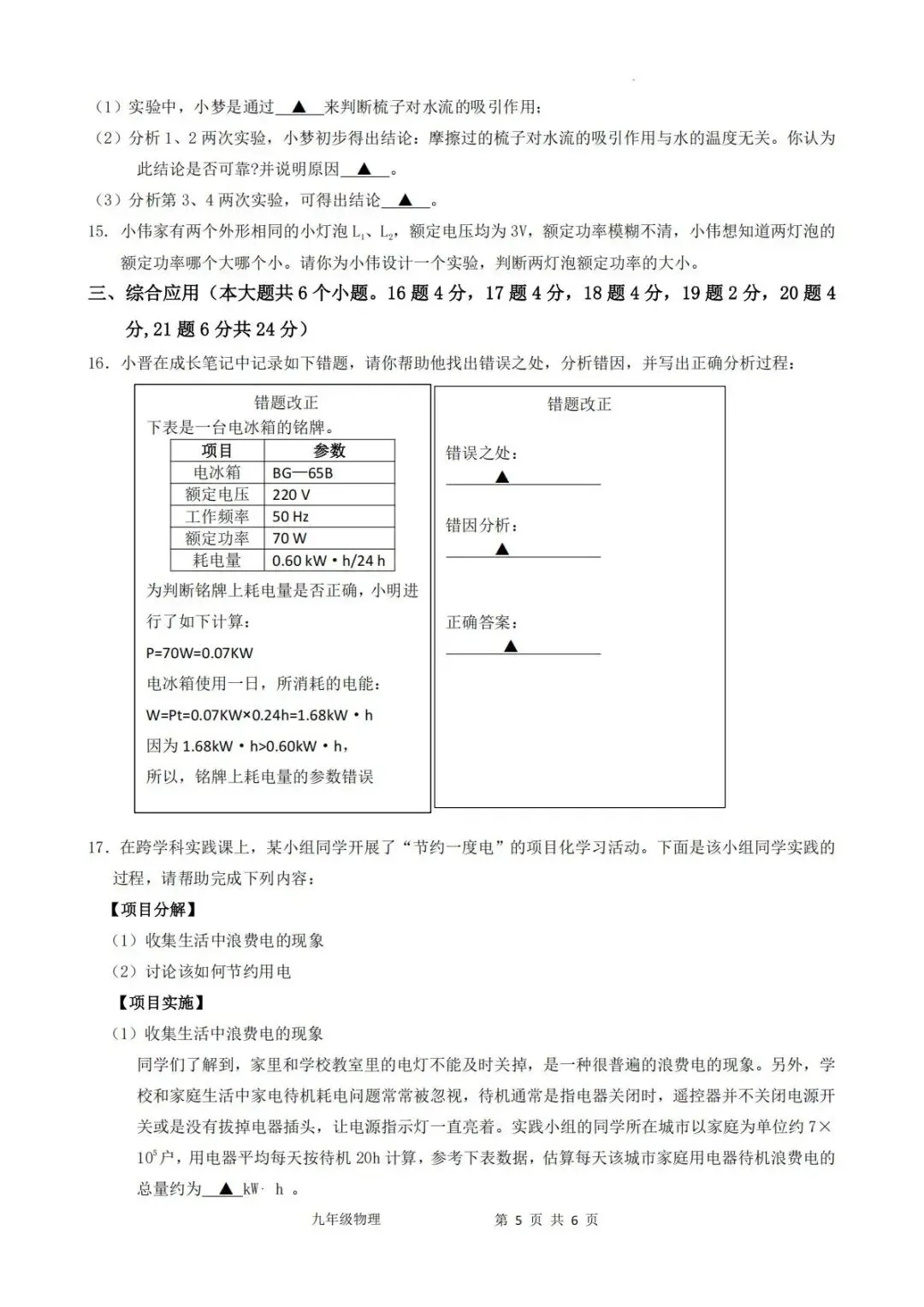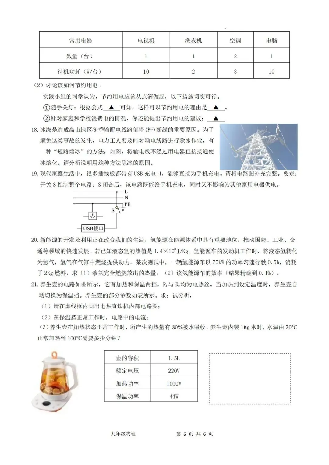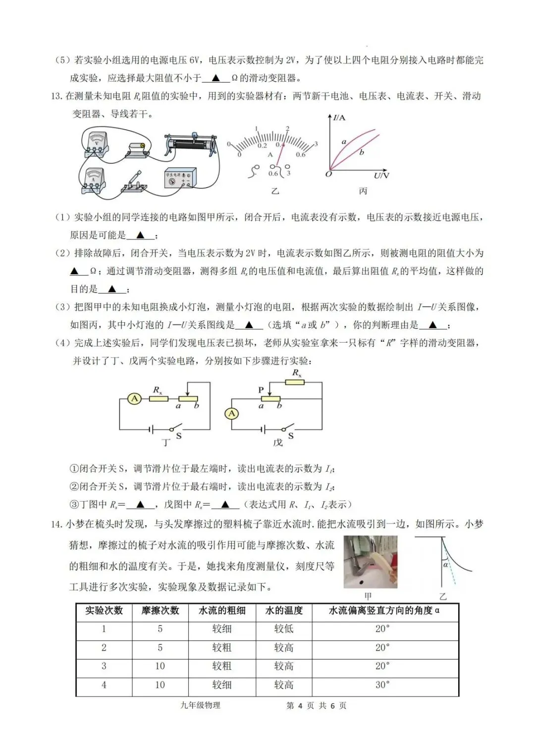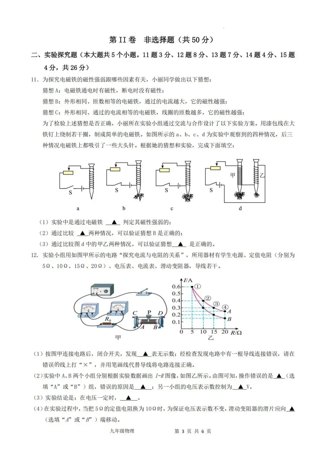 大同物理2025-2026学年九年级上学期期末考试