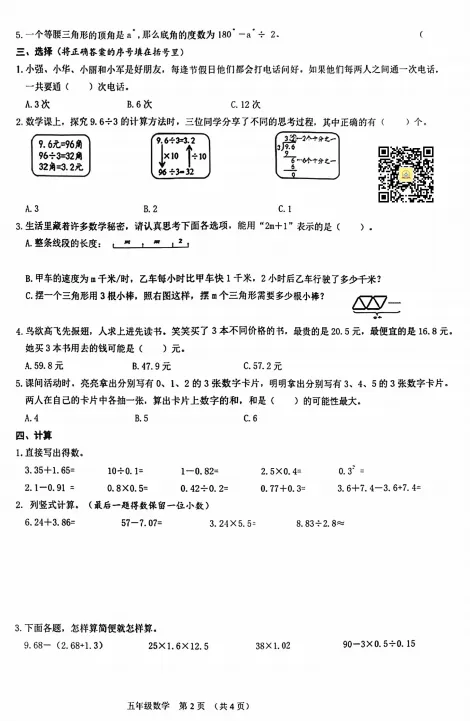 >太原市25-26学年五年级上学期期末试题汇总分享!
