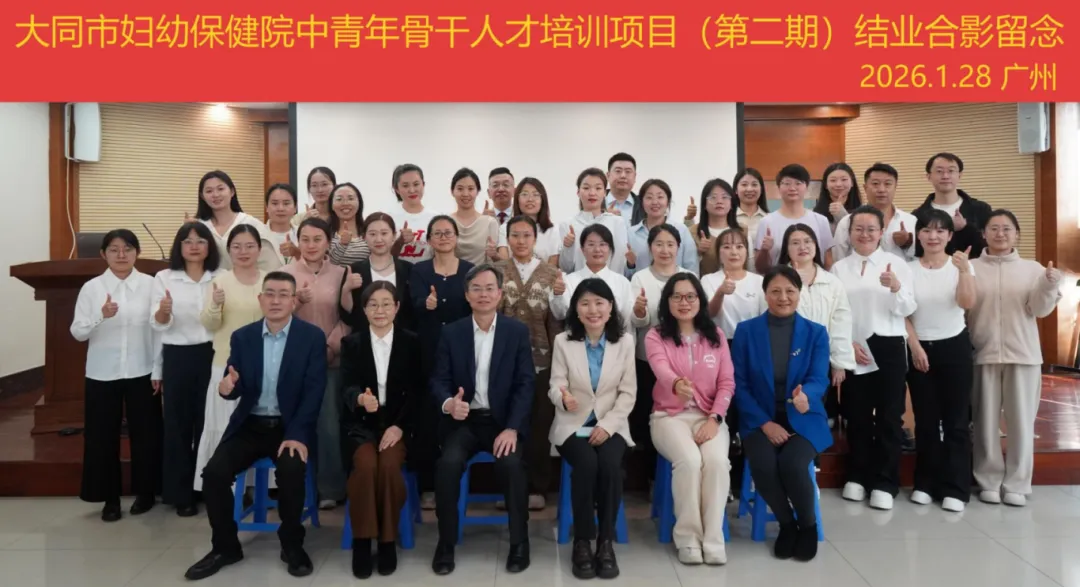 广东省妇幼保健院承办的大同市妇幼保健院中青年骨干人才培训项目(第二期)结业仪式于2026年1月28日在番禺院区医技楼七楼多功能会议厅圆满举行。广东省妇幼保健院党委书记欧奕强、副院长尹爱华、相关科室和教学基地负责人及30名培训学员出席本次结业仪式,结业仪式由科教科科长罗先琼主持。