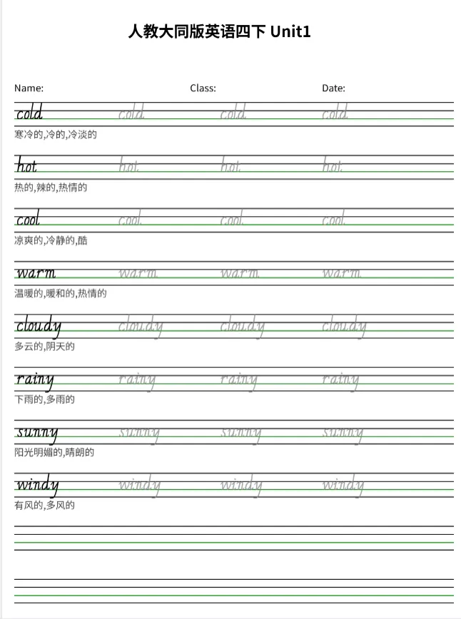 >人教版大同(三起)小学英语四年级下册Unit1(单词)朗读录音在线听力mp4