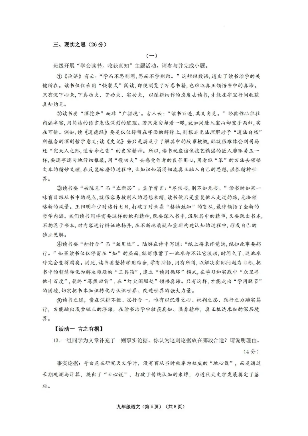 太原市2025-2026学年九年级期末学业物理、化学、英语、试卷分析解答