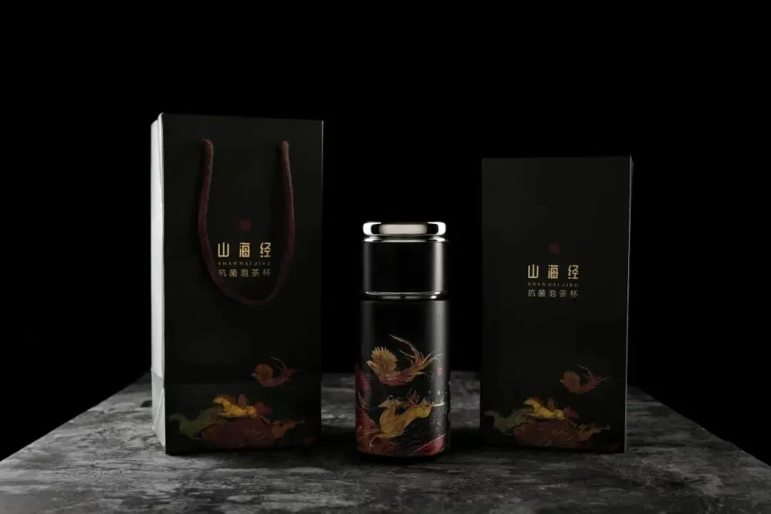 抗菌泡茶杯实力圈粉,太钢抗菌不锈钢内胆守护饮水健康,杯身以水墨绘五台山圣境、山海经神兽等,融实用功能与晋地文化、神话美学,质感与格调兼备。