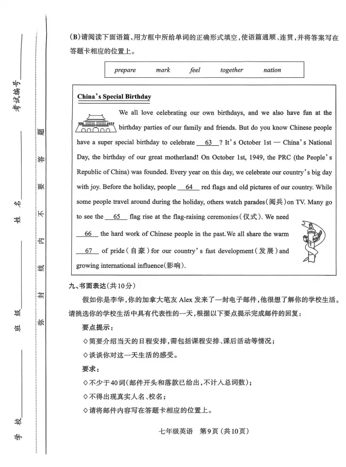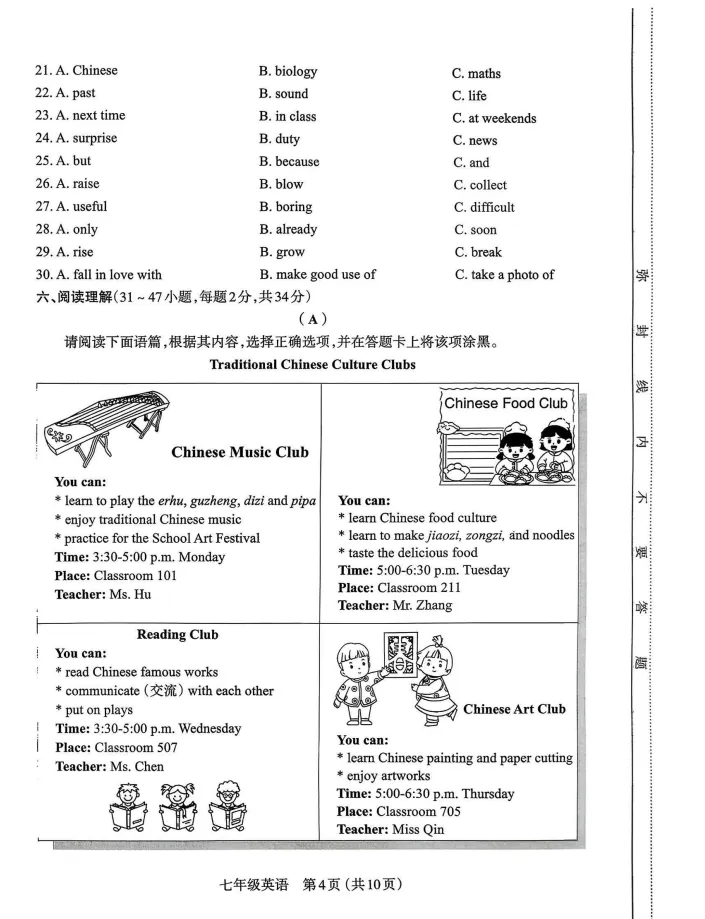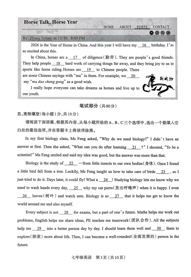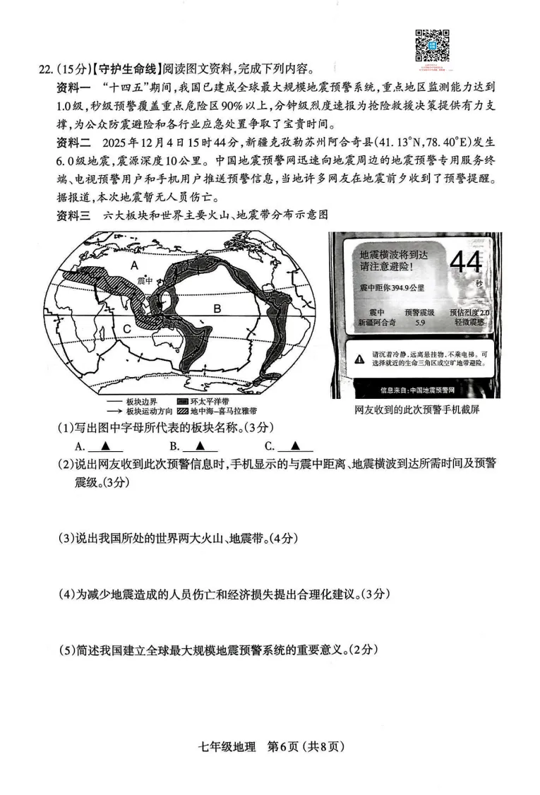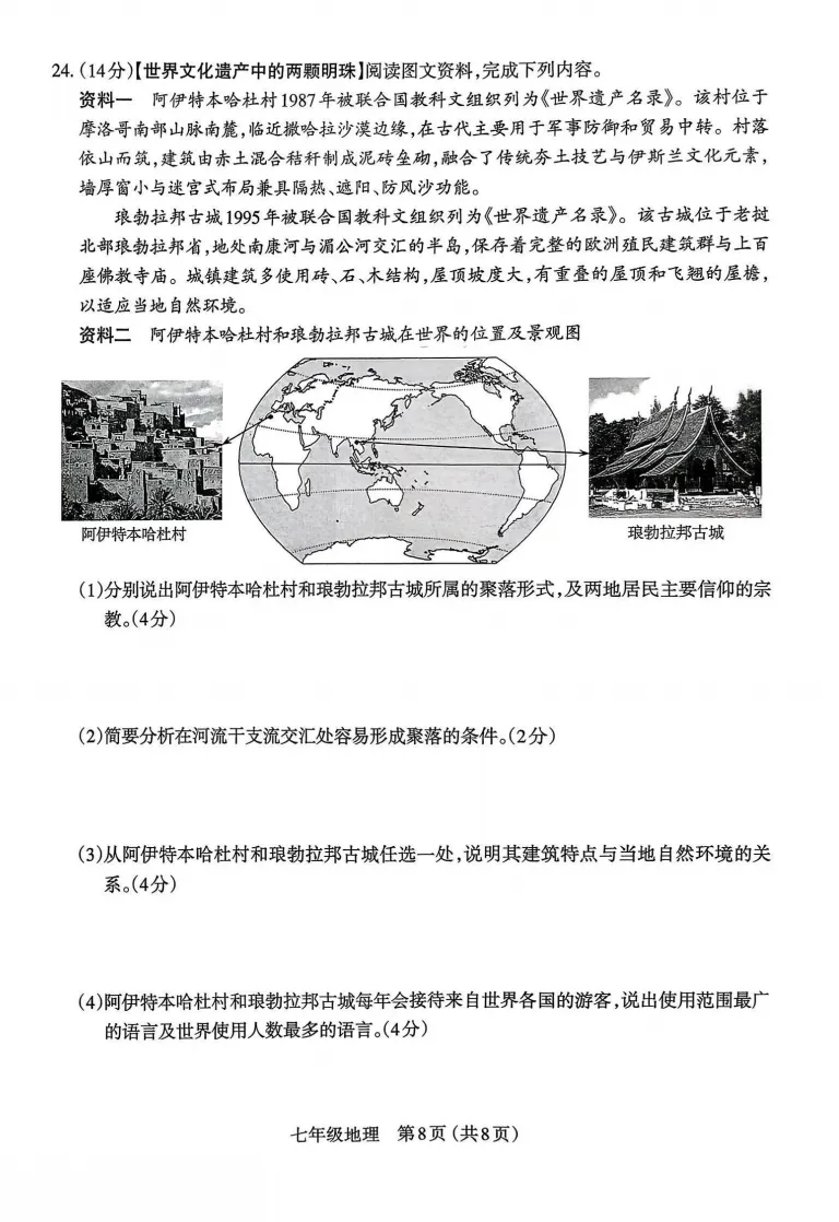 >太原市2025-2026学年第一学期七年级期末学业诊断语文、历史、英语、地理试题及答案