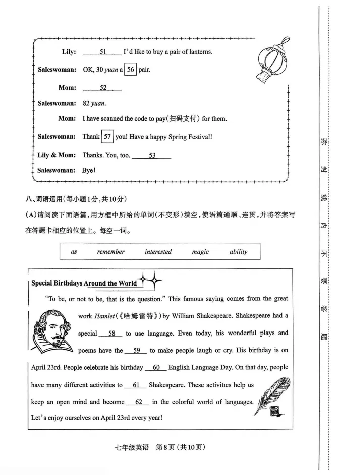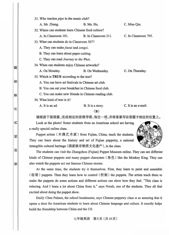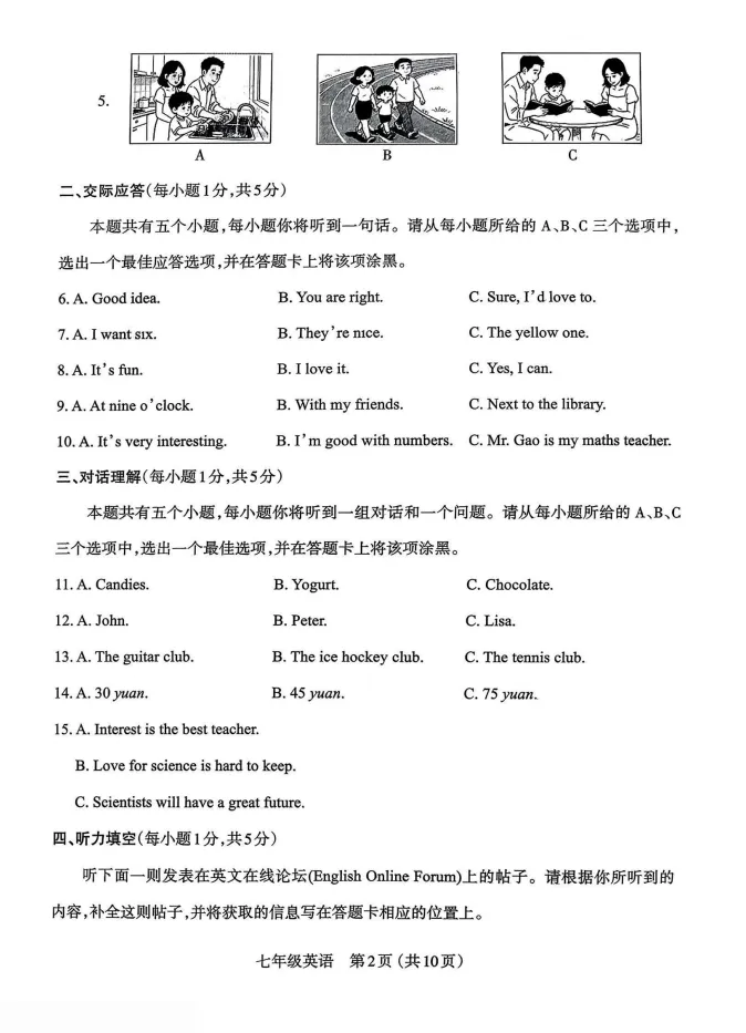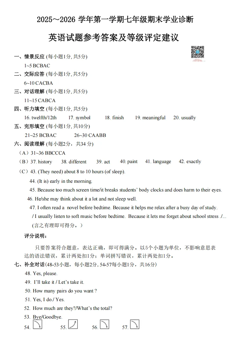 【英语】太原市2025~2026学年第一学期七年级期末考试【试卷+答案】